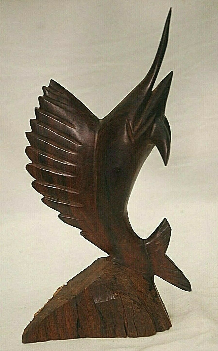 Hand Carved Rosewood Marlin Sailfish Wooden Sculpture Figurine Curio Shelf Decor