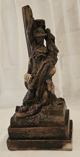 Made of cast stone. Cast stone is a type of gypsum cement whose properties are much different from plaster of paris which is what most sculpture shops use. Unlike plaster, which is soft, light and weak, cast stone is hard, heavy and strong. Cast stone feels like, and is heavy like a real stone would be, which can be experienced as soon you try to lift it.
