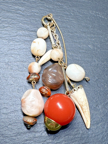 6 Count Craft Beads - Geometric Tribal Caramel Brown/Tan Plastic Beads M211.44