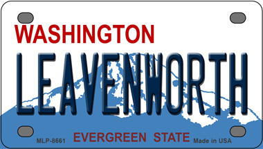 Leavenworth Washington Novelty Mini Metal License Plate Tag. 2.2" x 4" high gloss novelty mini metal license plate tag. Made of the highest quality aluminum for a weather resistant finish. It is lightweight and durable. Pre-drilled holes for quick and easy mounting on any vehicle, or add a ribbon, wire or string to instantly turn this license plate into a sign and display it on a wall or door. Individually shrink-wrapped and proudly made in the USA.