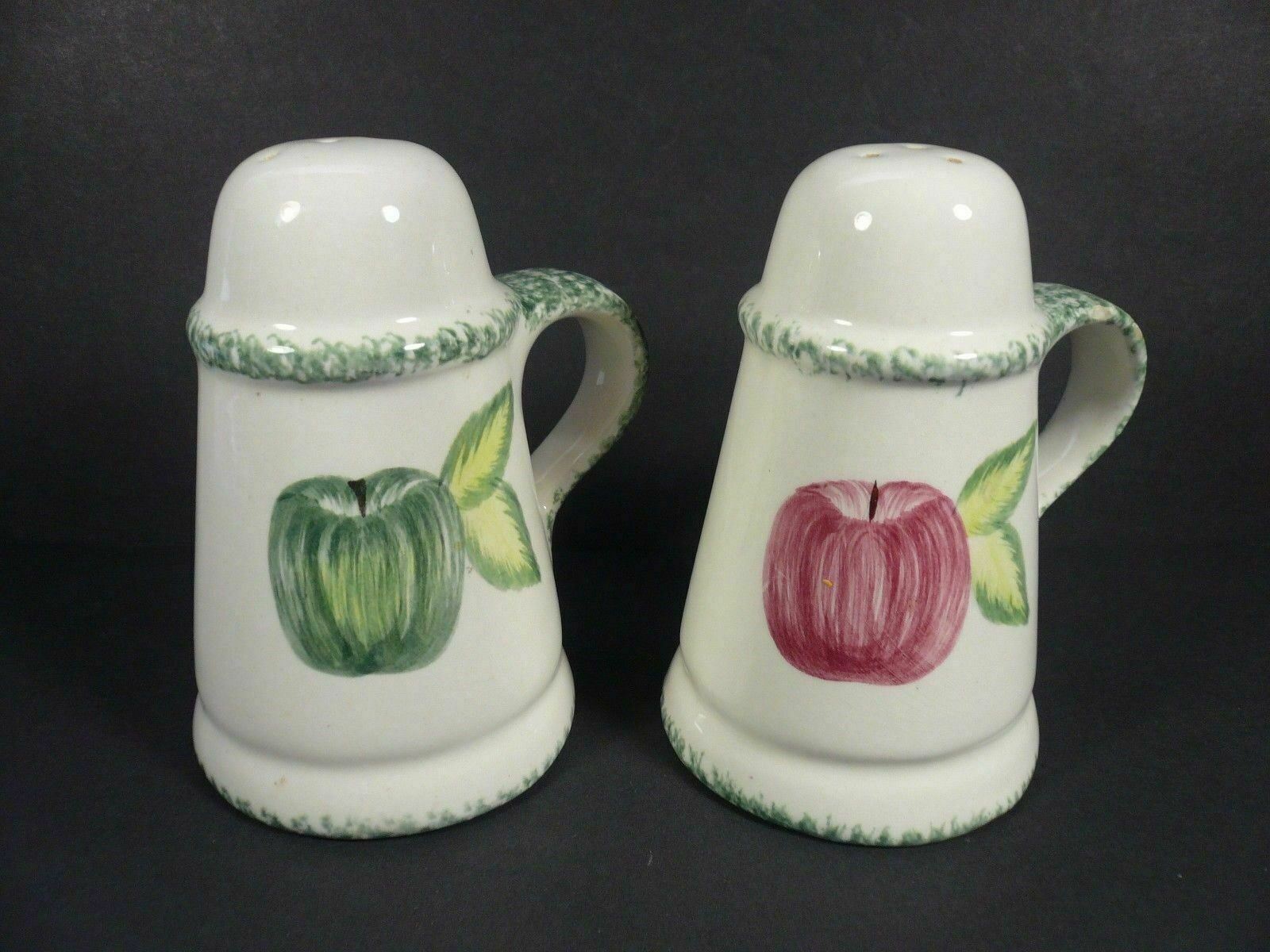 Laurie Gates Los Angeles Pottery Red Green Apple Salt Pepper Shakers
