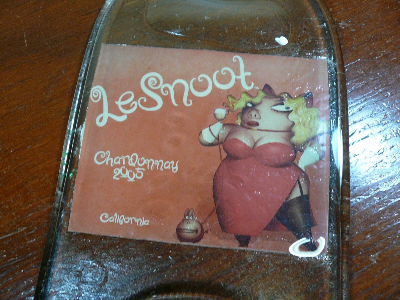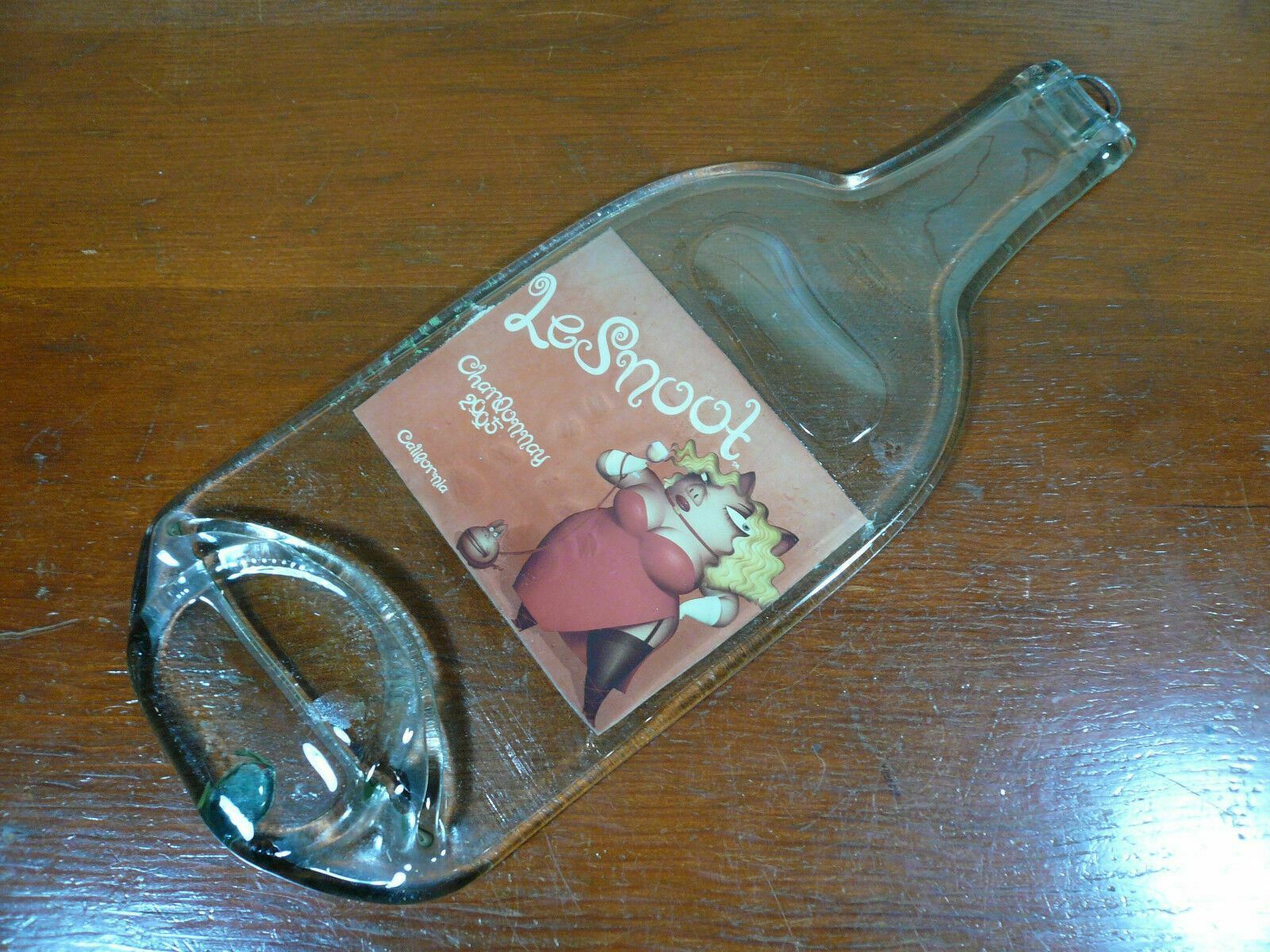Wine Bottle Cheese Tray Glass Melted Flattened LeSnoot Chardonnay California