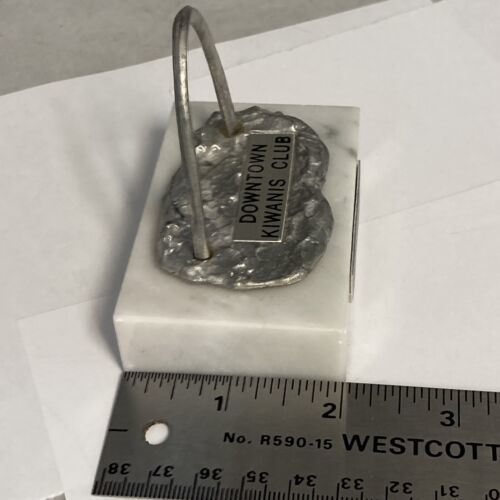 On a marble base and would look great as part of a Kiwanis Club collection. Probably 1970s vintage or later.
