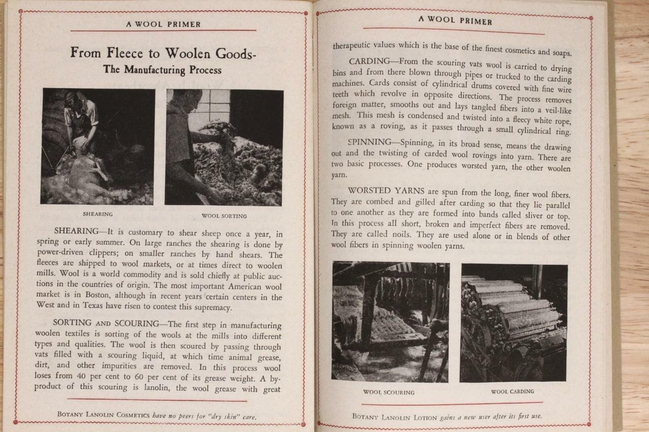 Vintage Book Botany Worsted Mills A Wool Primer 1943 Advertising Booklet - no smoke or pet odors.