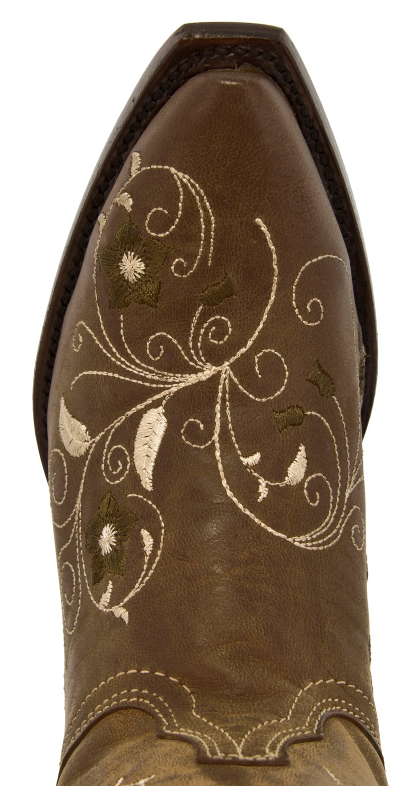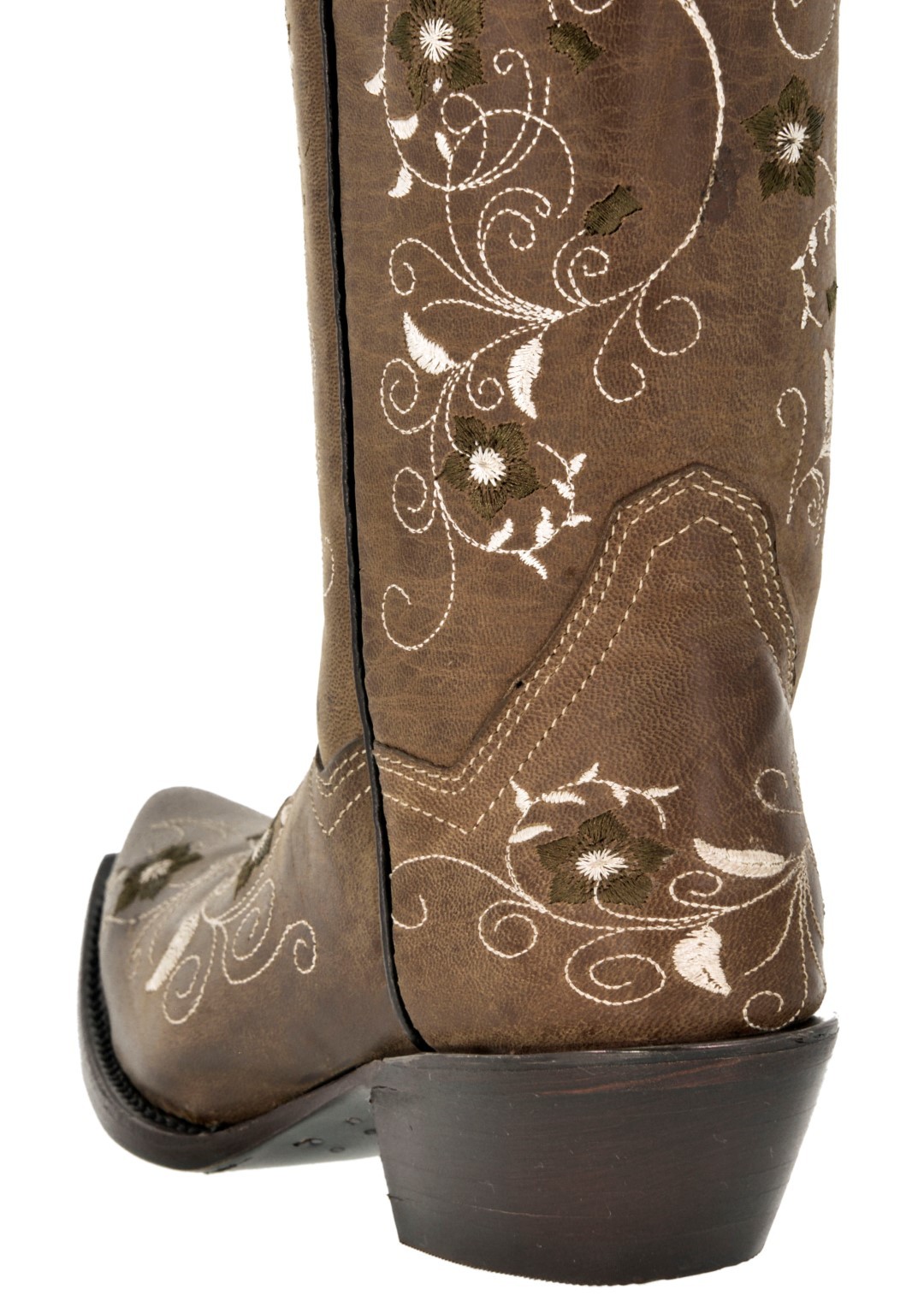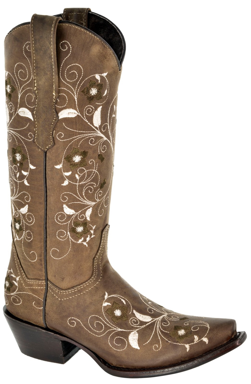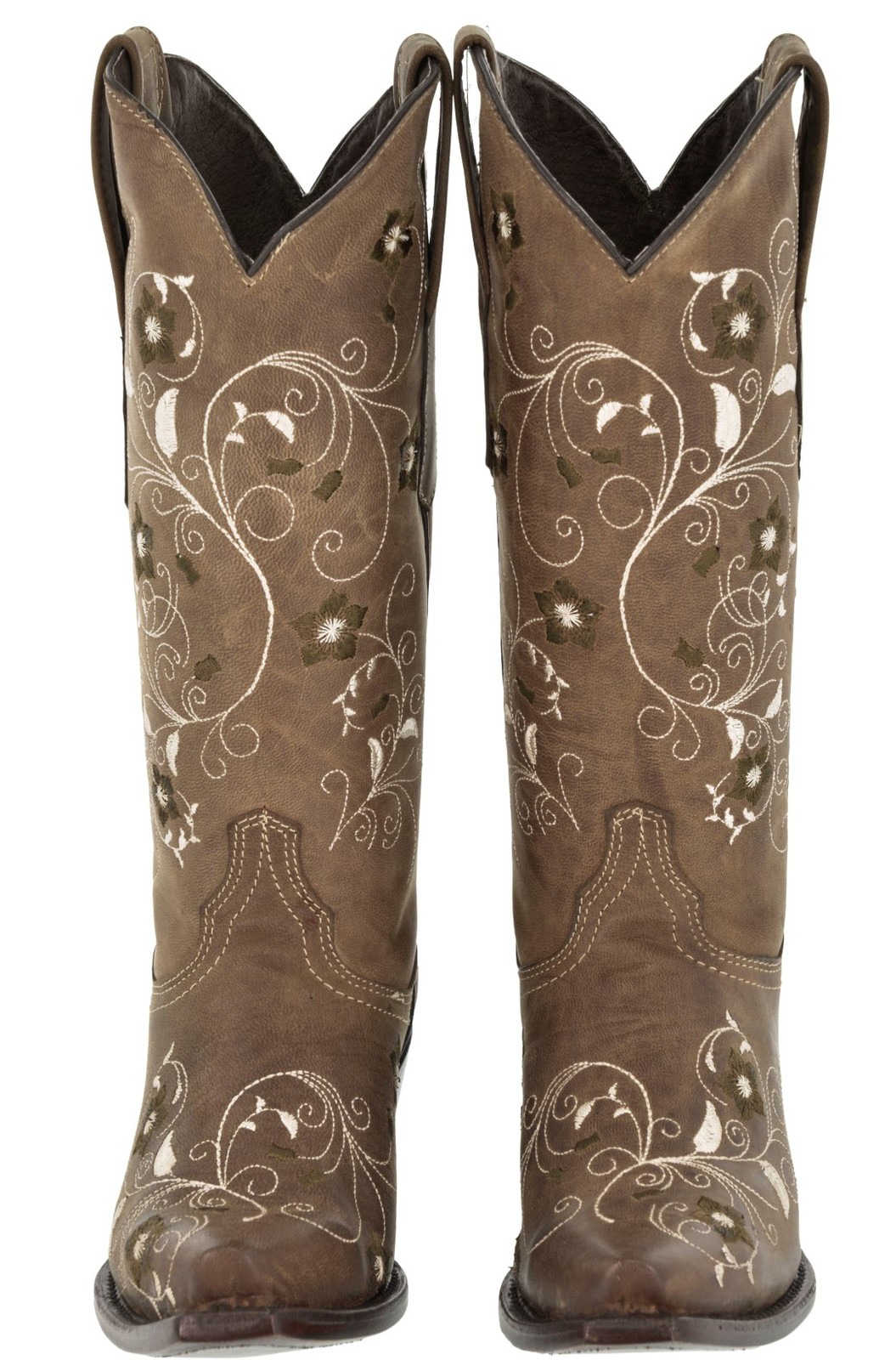 Womens Cowboy Boots Light Brown Western Wear Leather Floral Embroidered Snip Toe