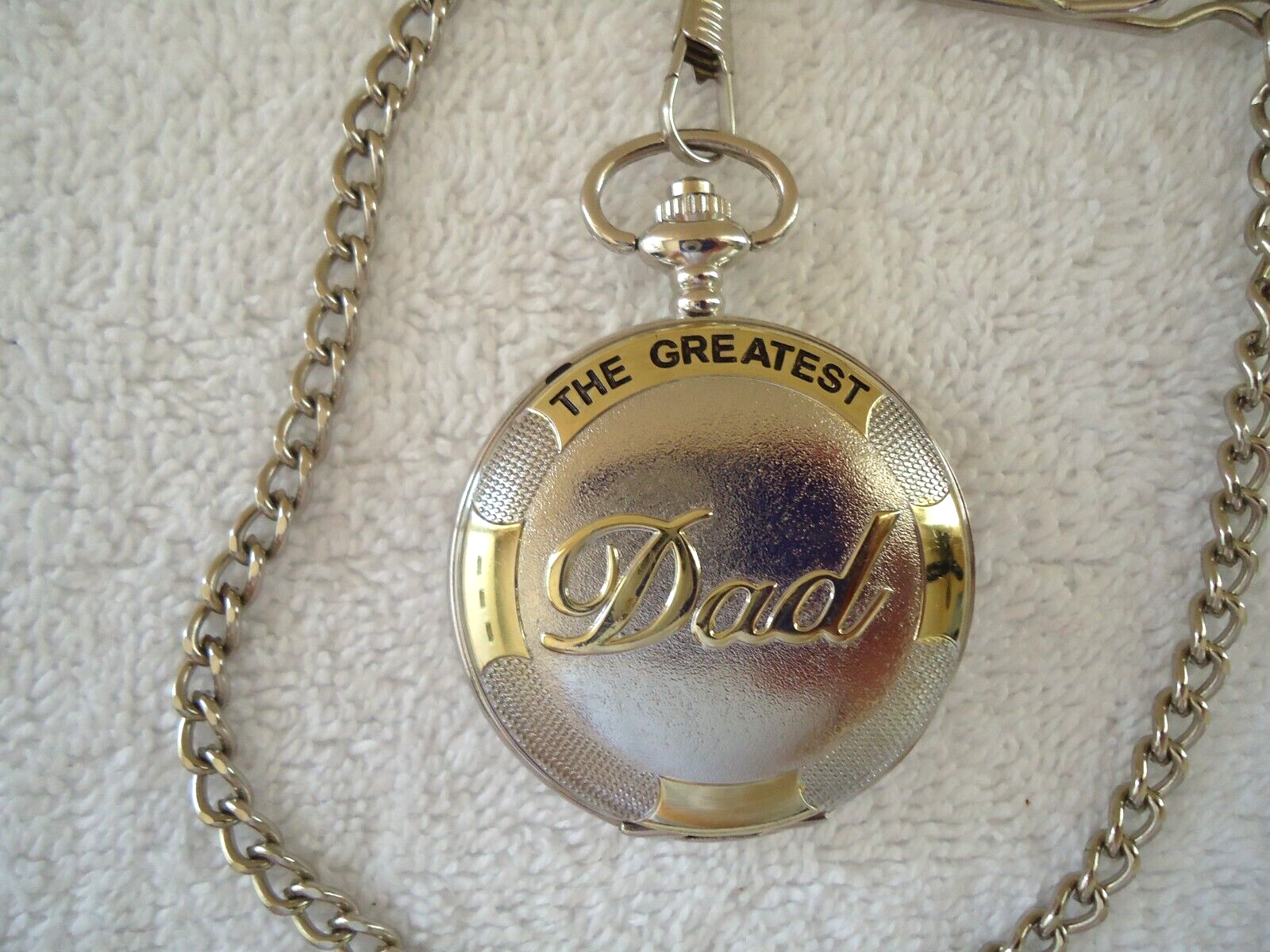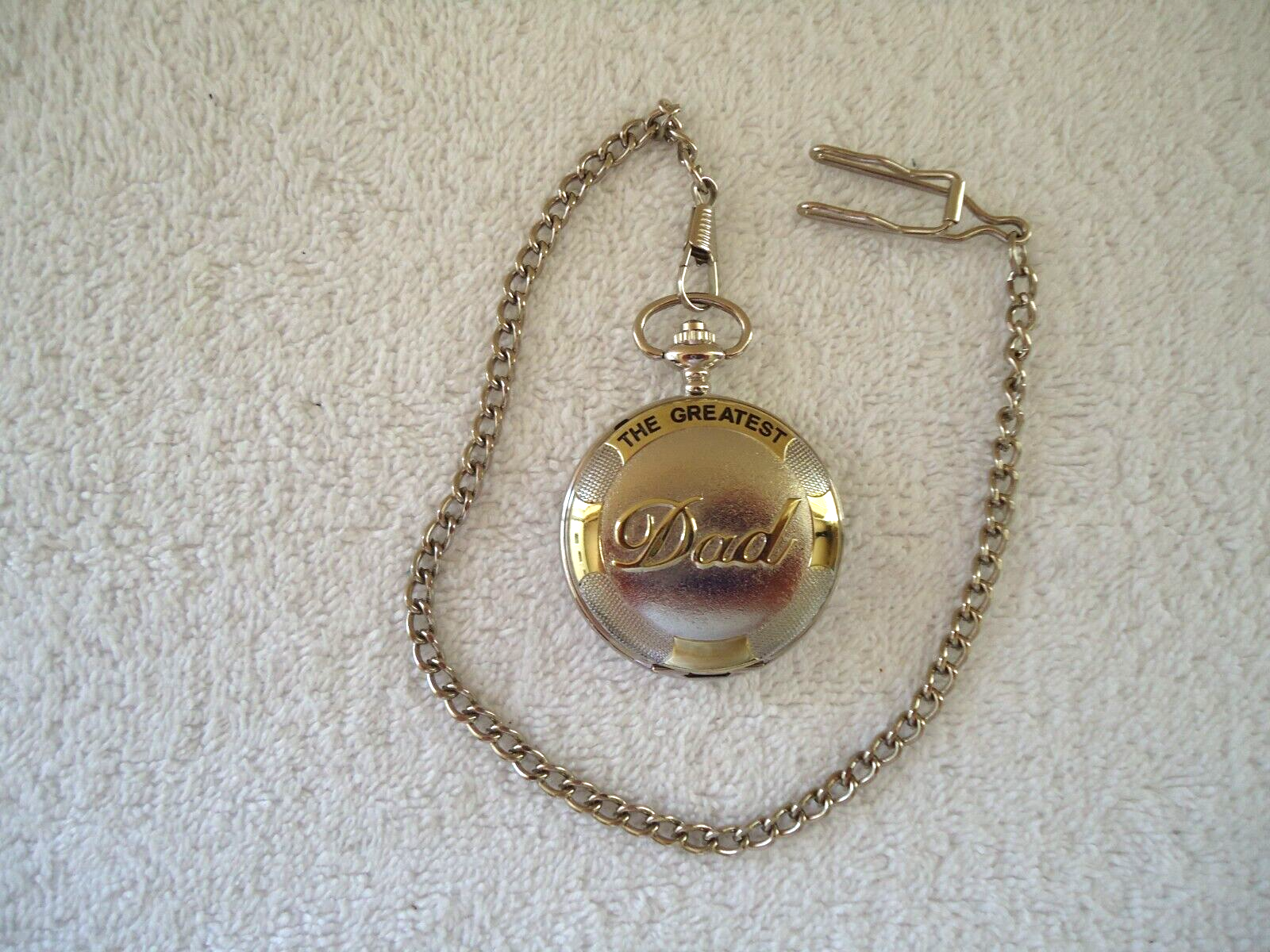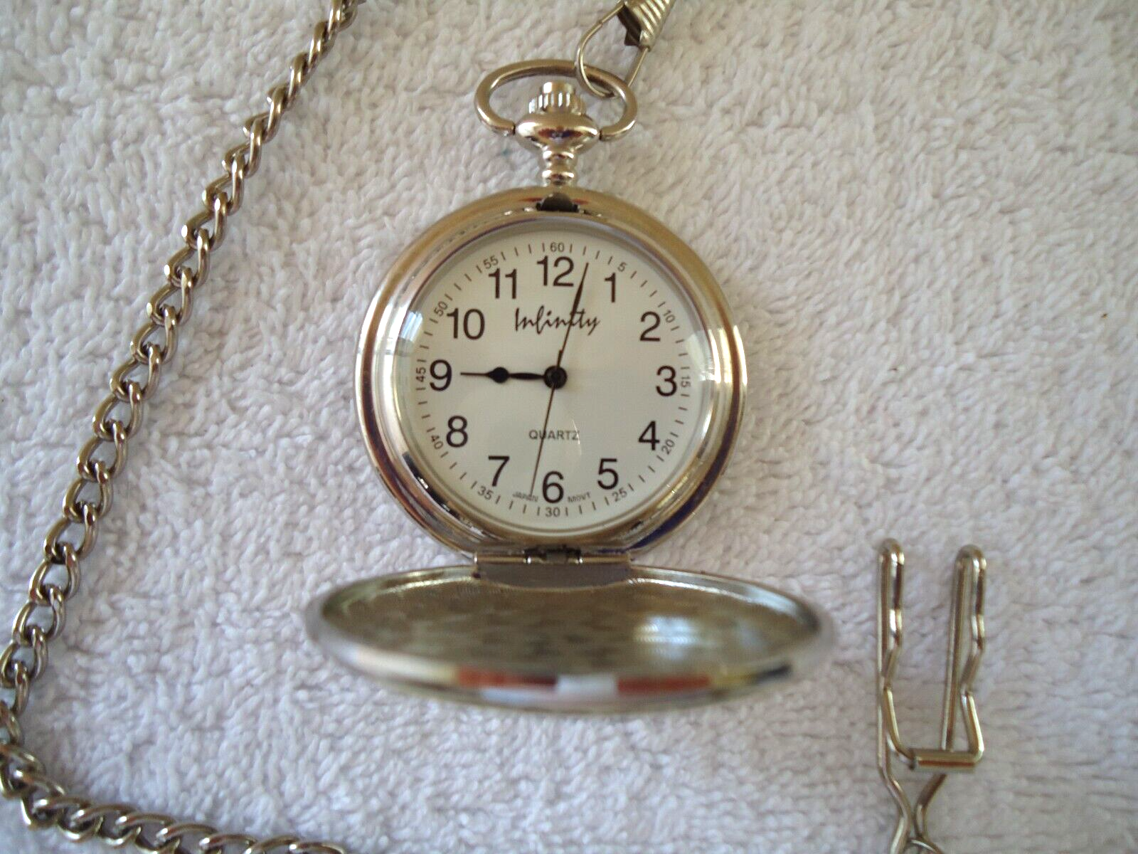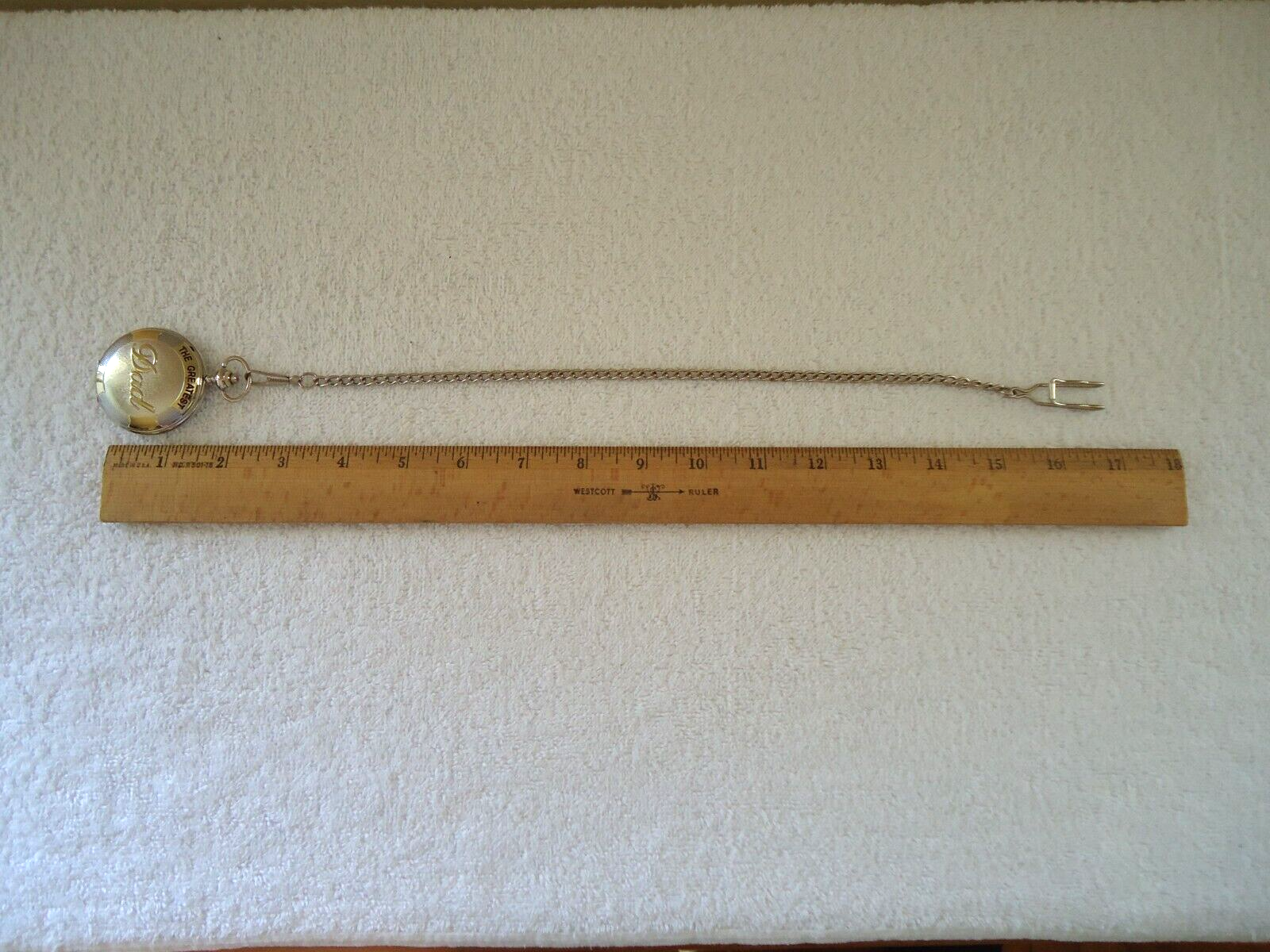 Here is a Infinity Quartz " DAD " Themed Pocket Watch With Chain " GREAT ITEM ".If you have any concerns or questions about this item(s) please ask before bidding / purchasing because this item(s) is being SOLD AS IS.Thank You.-(PC15)