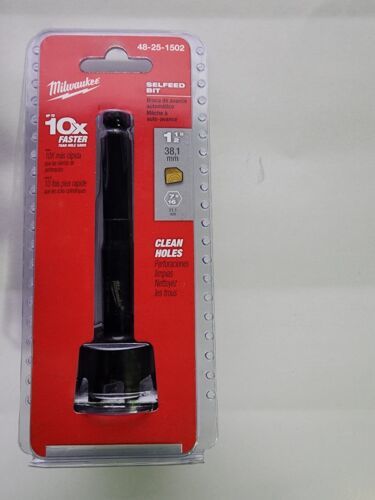 You are Buying a Brand New And factory Sealed Milwaukee 1-1/2 in. Selfeed High-Speed Steel Wood Boring Bit Model # 48-25-1502.... cutting plane shaves the hole radius so you can drill clean, smooth holes without applying much pressure. Removable and replaceable feed screw draws the bit into the gummiest of woods. Requires minimum chuck size of 1/2 in.