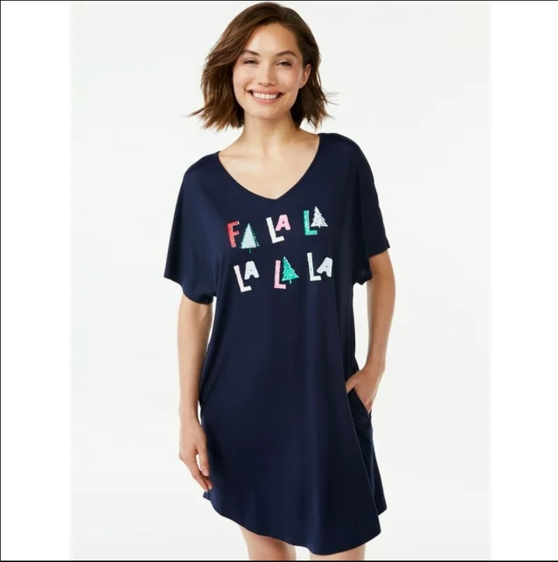Meet Joyspun. A joyful new spin on Secret Treasures. Youll fa la la fall in love with this adorable Sleep Shirt from Joyspun, featuring a cute holiday-themed print and an oversized fit. Lounge the day away or slip it on and sleep in