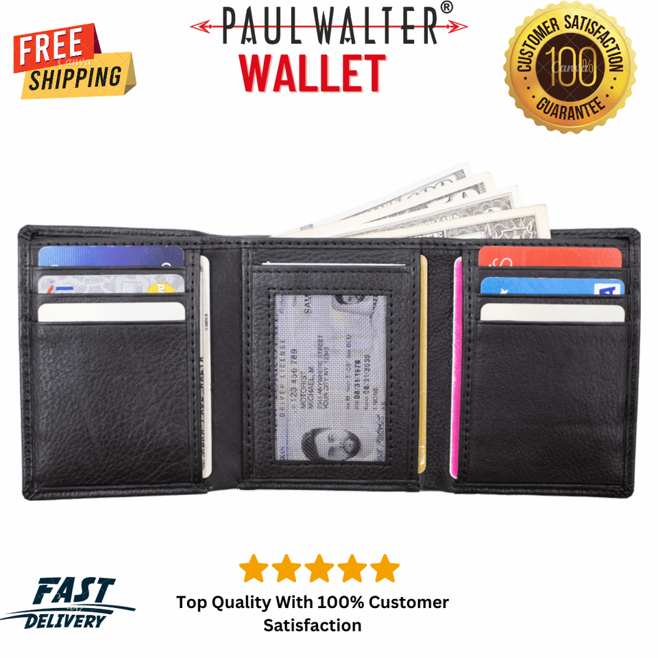 PAUL WALTER - Cowhide Leather Men's Trifold Wallet with RFID Blocking.
