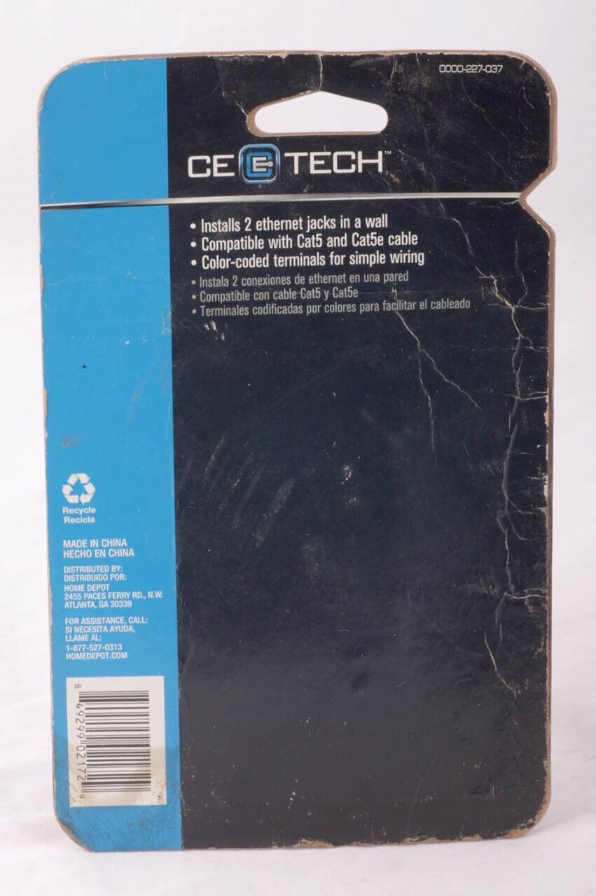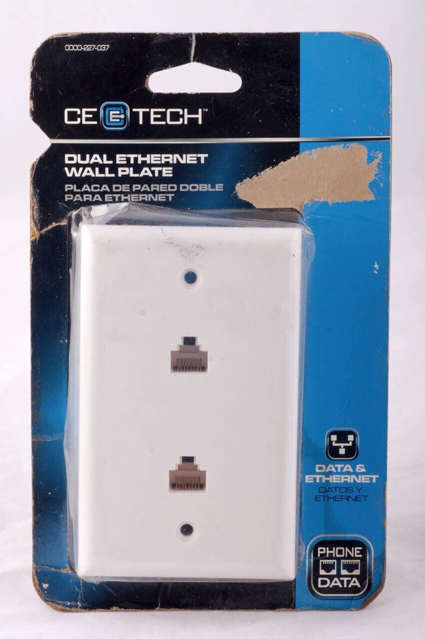 Dual Ethernet data port Cat5 Wall Plate White CE Tech Cat5e