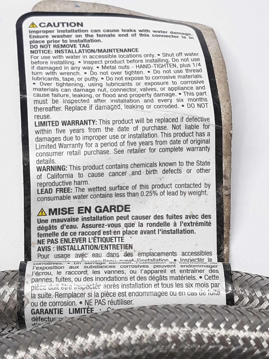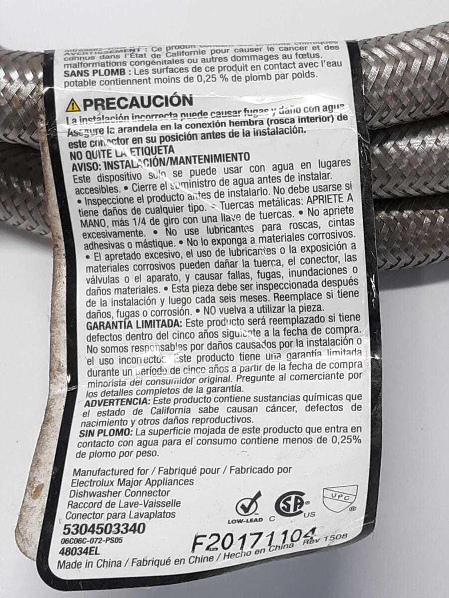 Electrolux Major Apl. F20171104 Dishwasher Connector 6ft Length 3/8" x 3/8"