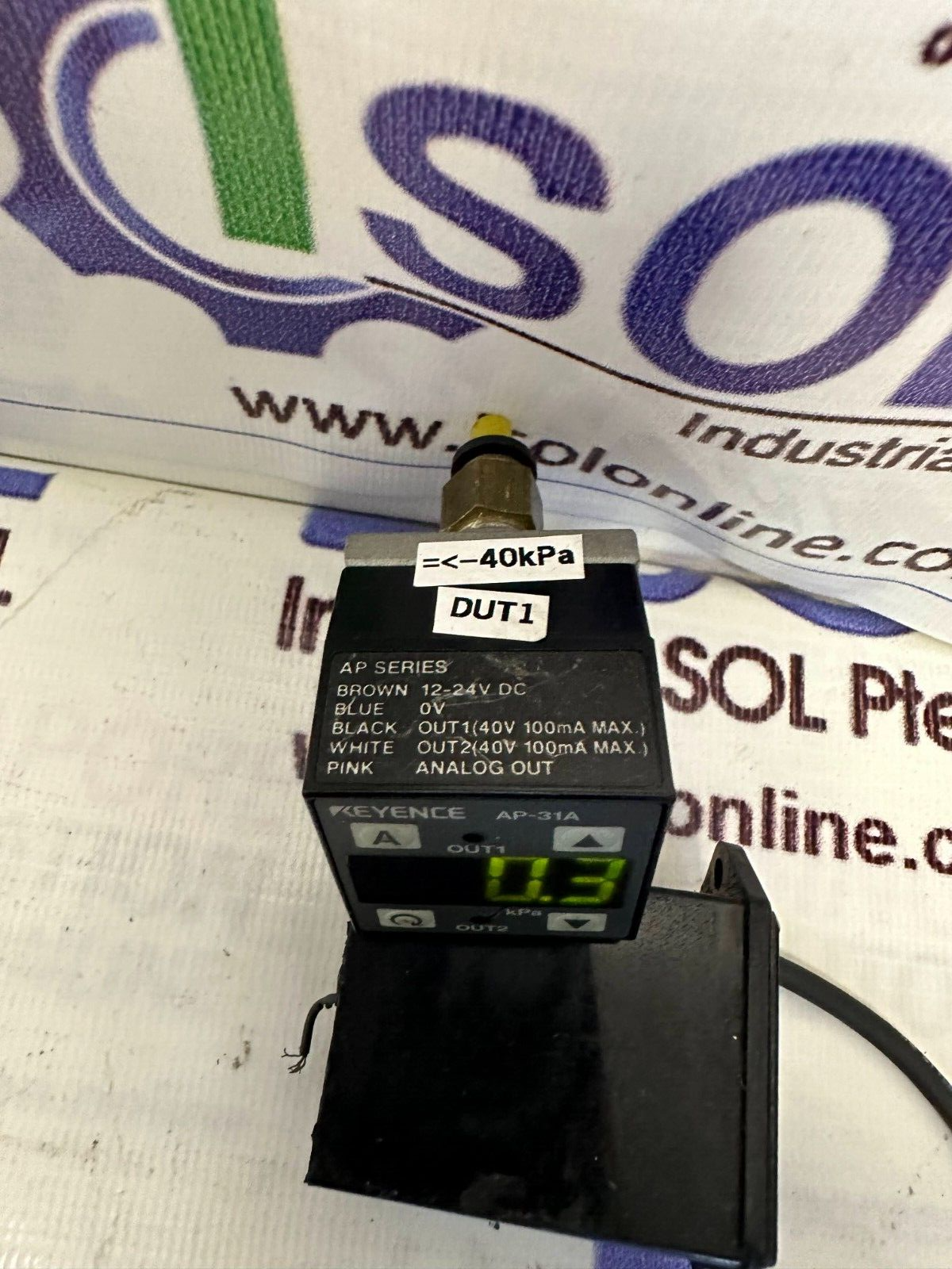 The KEYENCE AP-31A is a pressure sensor designed to measure negative pressure, also known as vacuum