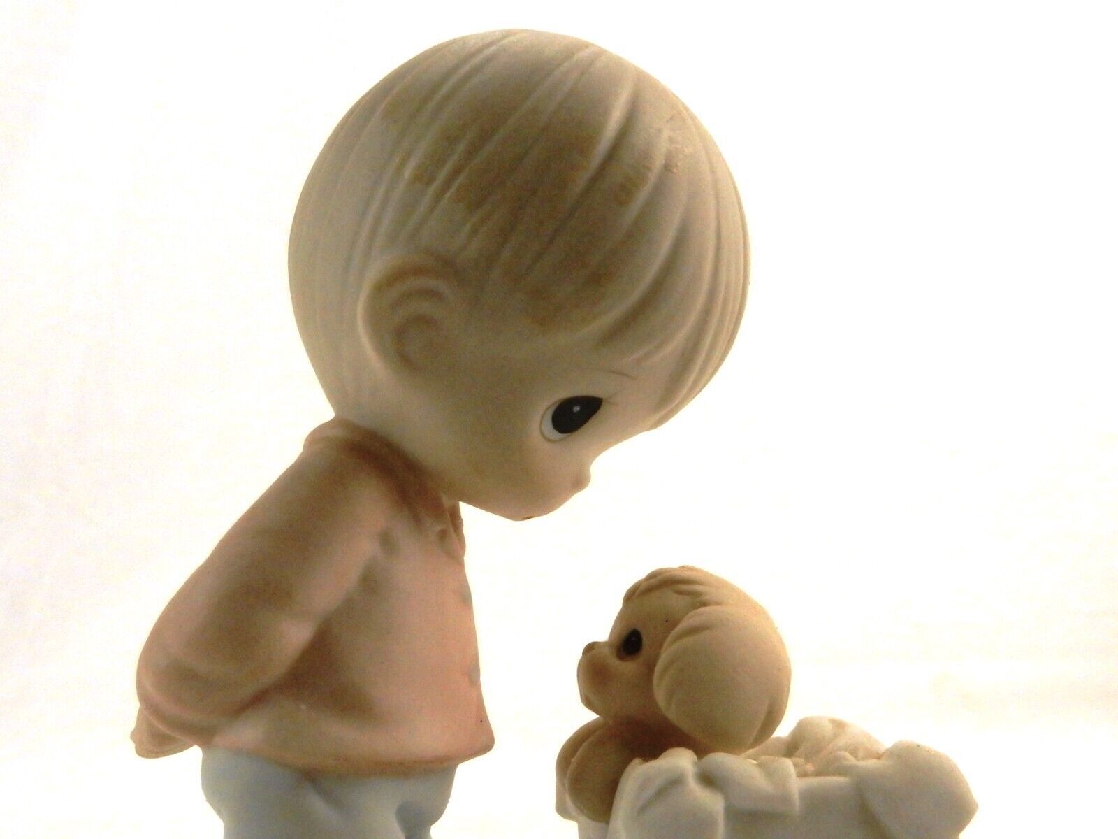 Precious Moments figurine dated 1987, Item number PM-882 with a flower mark