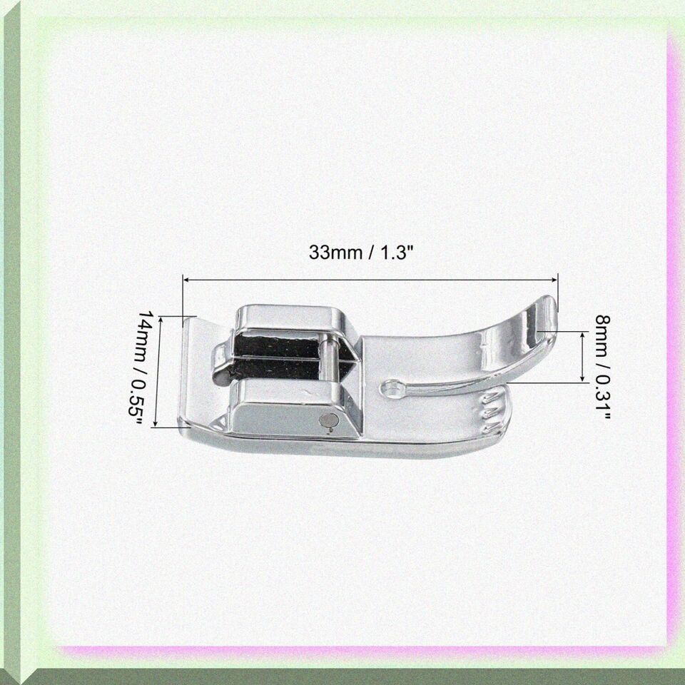 (C) **Timeless Reliability**: With its exceptional resistance to corrosion, our stainless steel presser foot promises a prolonged service life. This means you can focus on perfecting your stitches without worrying about the longevity of your tools. Invest in a presser foot that stands the test of time, ensuring your sewing endeavors are always supported by unwavering quality.