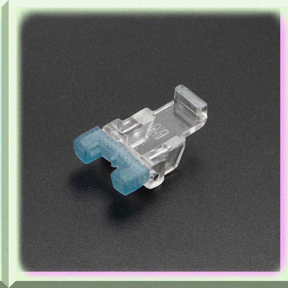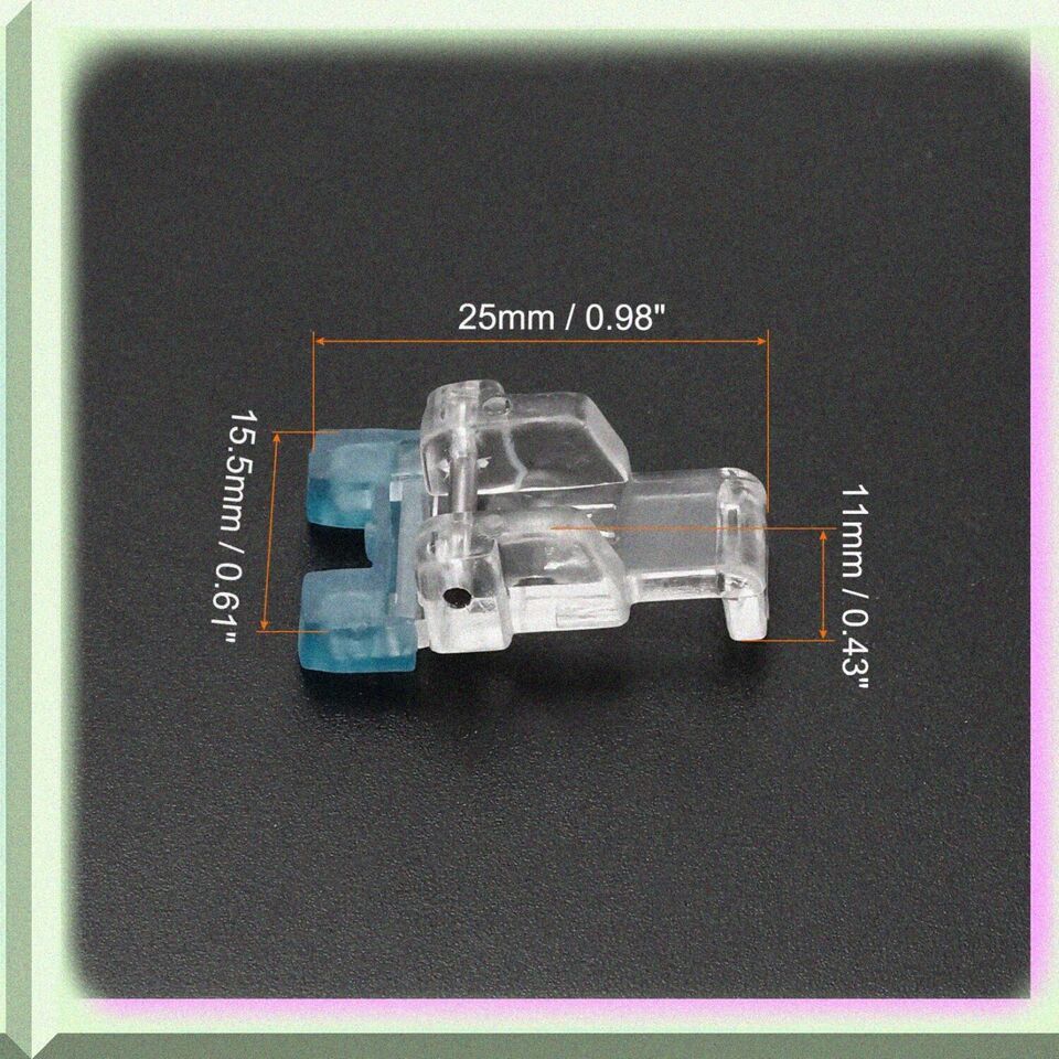 (B) **Rust-Resistant Design**: Say goodbye to the worries of rust and corrosion. Our presser foot's plastic composition is inherently resistant to rust, ensuring that it maintains its pristine condition over time. This feature is particularly beneficial for those who sew in humid environments or store their tools in less-than-ideal conditions. Enjoy the peace of mind that comes with a presser foot that stays in top shape, project after project.
