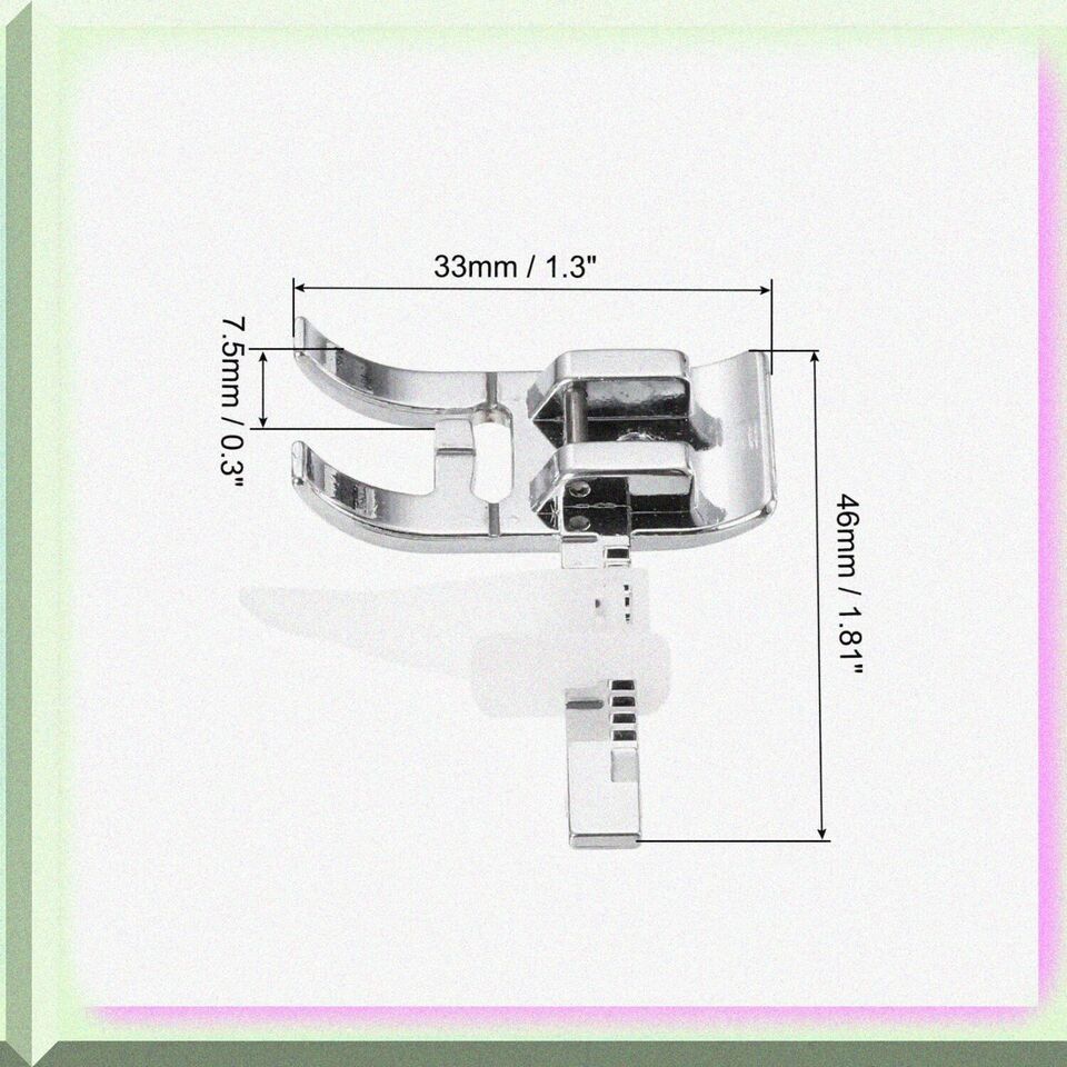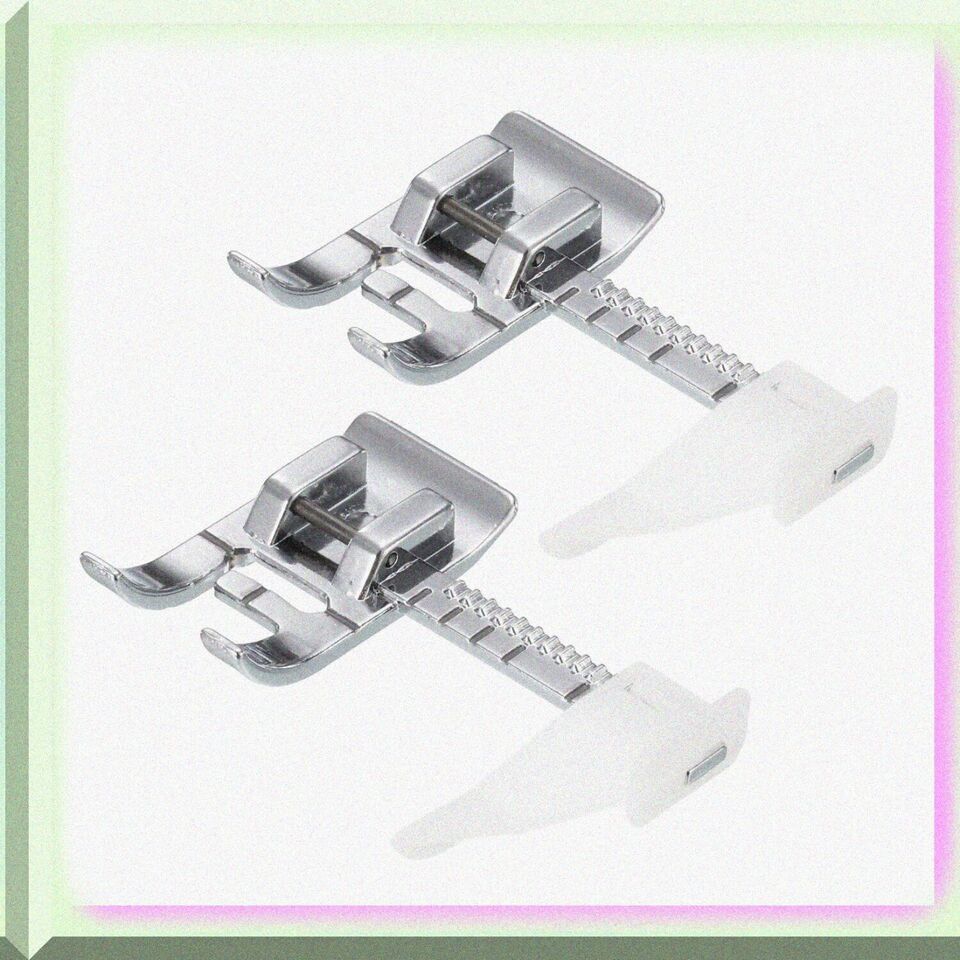 Upgrade your sewing game with our Universal Stainless Steel Presser Foot Set! Perfect for both beginners and pros, these durable, rust-resistant feet fit most household and vintage sewing machines. Effortlessly fold thick fabric edges and keep your projects flat and flawless. Compact and lightweight, they're easy to carry and store. Simplify tedious tasks and boost efficiency with this essential sewing accessory. Includes 2 presser feet. Model: 6708. Get ready to sew like a pro! ==== FEATURES: ==== (A) **Unyielding Durability**: Crafted from premium stainless steel, our presser foot stands as a paragon of resilience. This robust material ensures that your sewing companion remains steadfast and reliable, resisting rust and wear over time. Say goodbye to frequent replacements and hello to a long-lasting partnership in your creative journey.