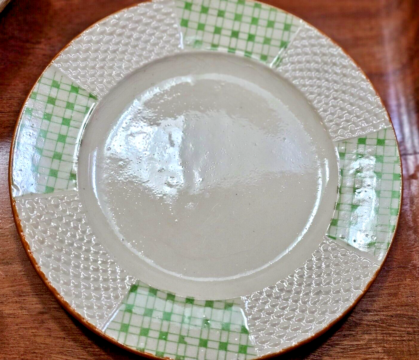 Vtg stackable teapot creamer & sugar bowl Japan green checked