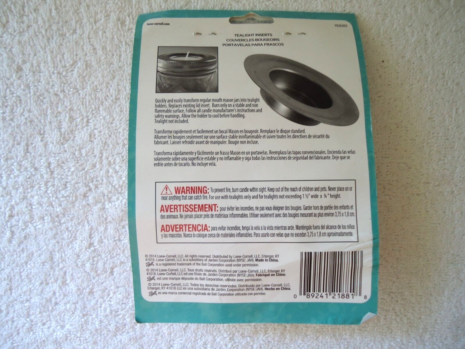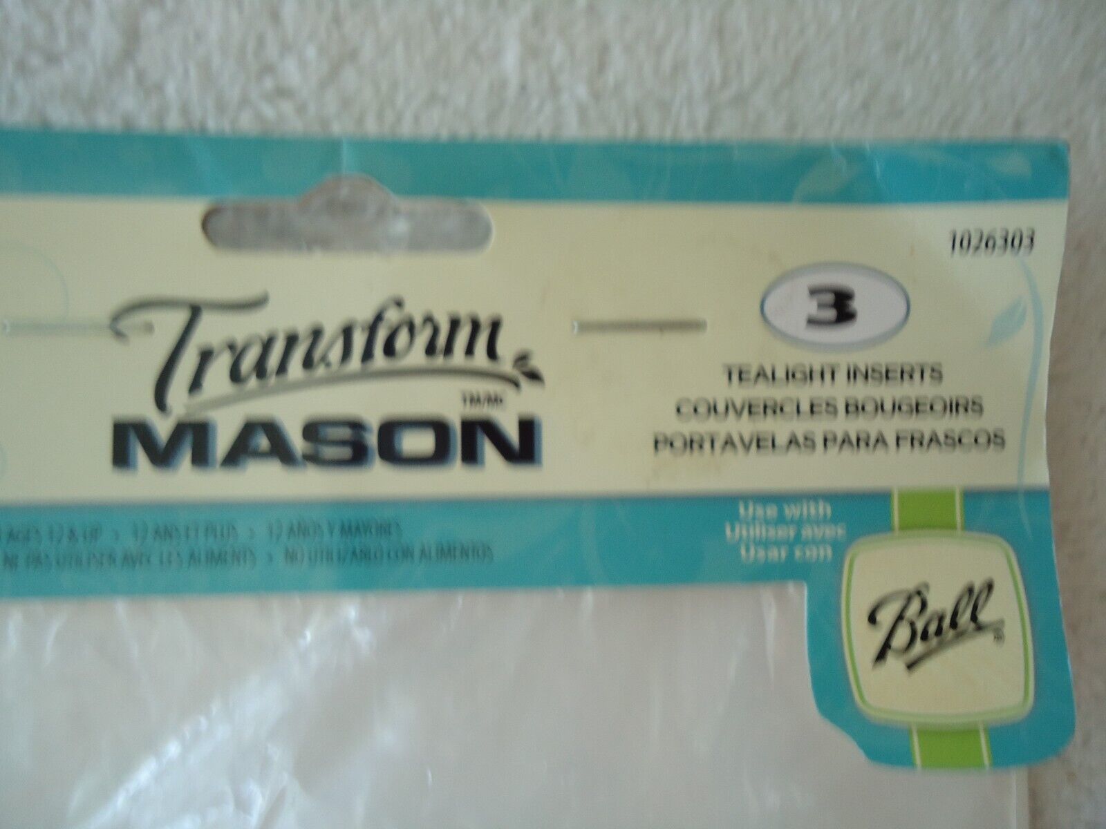 Here is a " NIP " Ball Pack Of 3 Tealight Inserts For Mason Jars " Great For Your Crafts ".If you have any concerns or questions about this item(s) please ask before bidding / purchasing because this item(s) is being SOLD AS IS.Thank You.-(PC143)