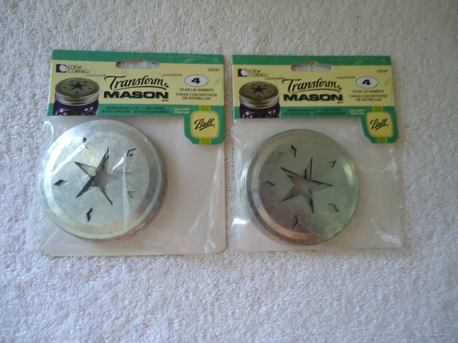 Here is a " NIP " Ball Lot of 2 Packs 4 per pack Star Lid Inserts For Mason Jars " Great For Your Crafts ".If you have any concerns or questions about this item(s) please ask before bidding / purchasing because this item(s) is being SOLD AS IS.Thank You.-(PC143)