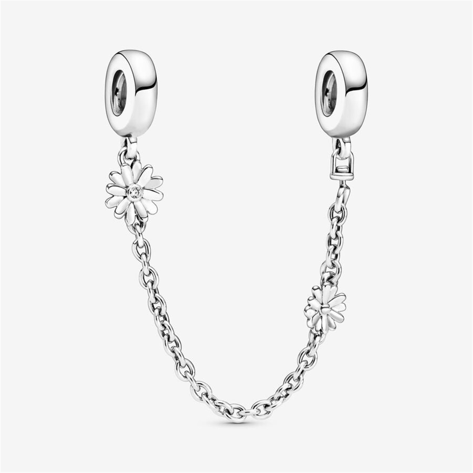 S925 Sterling Silver Daisy Flower Safety Chain Charm,Mom Gift,Gift for Her