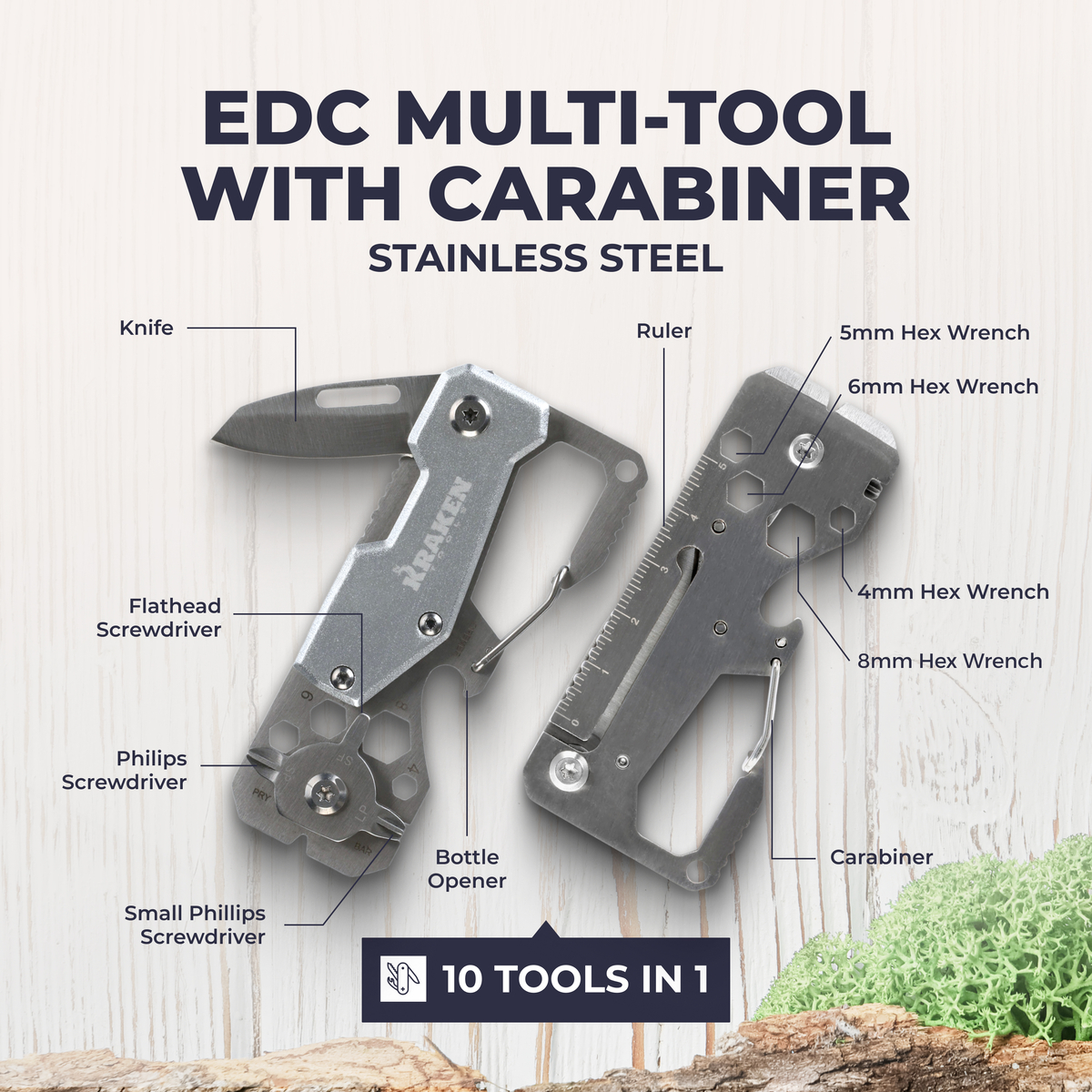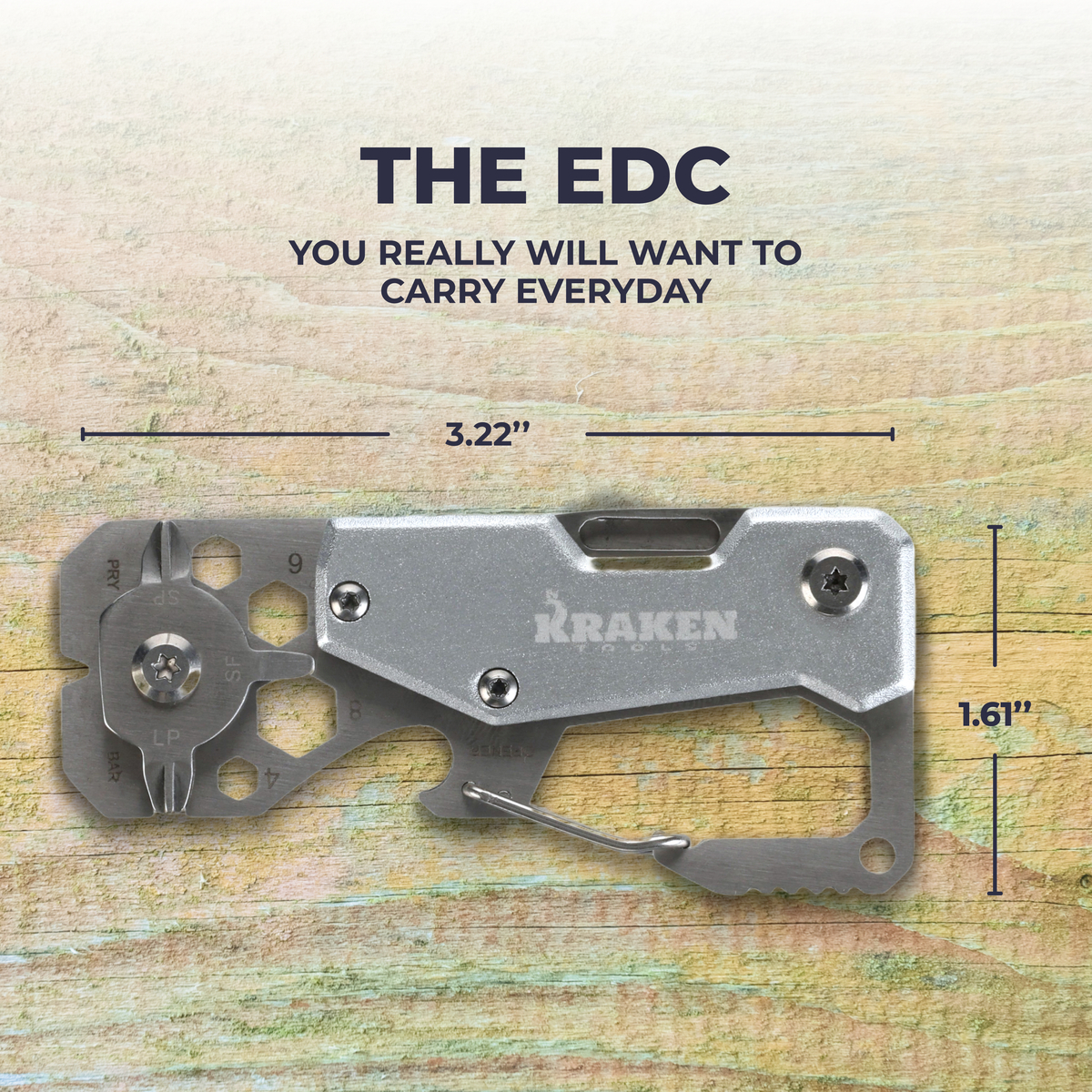 Kraken Tools 10 in 1 Stainless Steel EDC Multi Tool with Carabiner