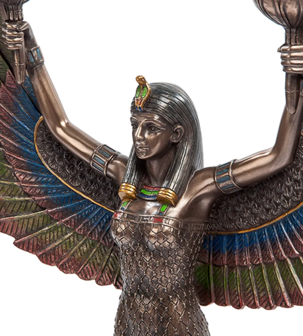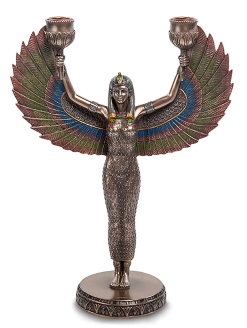 Isis Goddess of Motherhood Goddess Candle Holder Candlestick Polystone Bronze Home Decor Gift Made in Italy