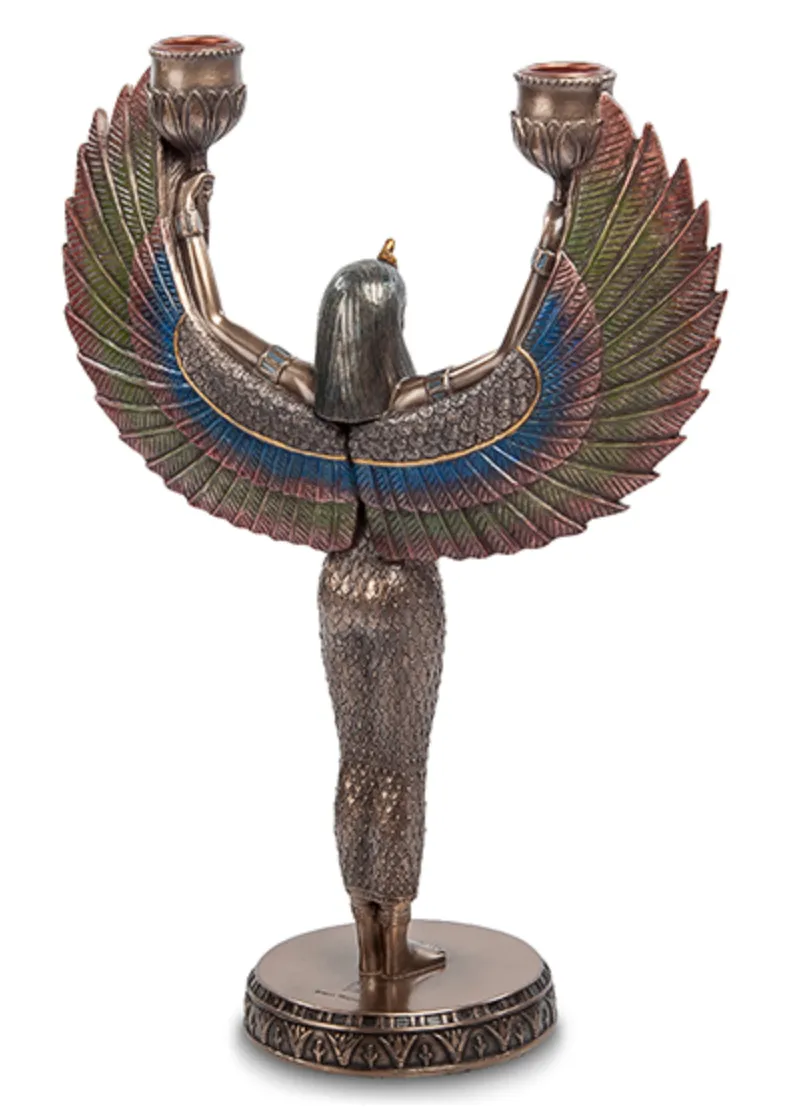Isis Goddess of Motherhood Candle Holder Candlestick Polystone Bronze Decor Gift