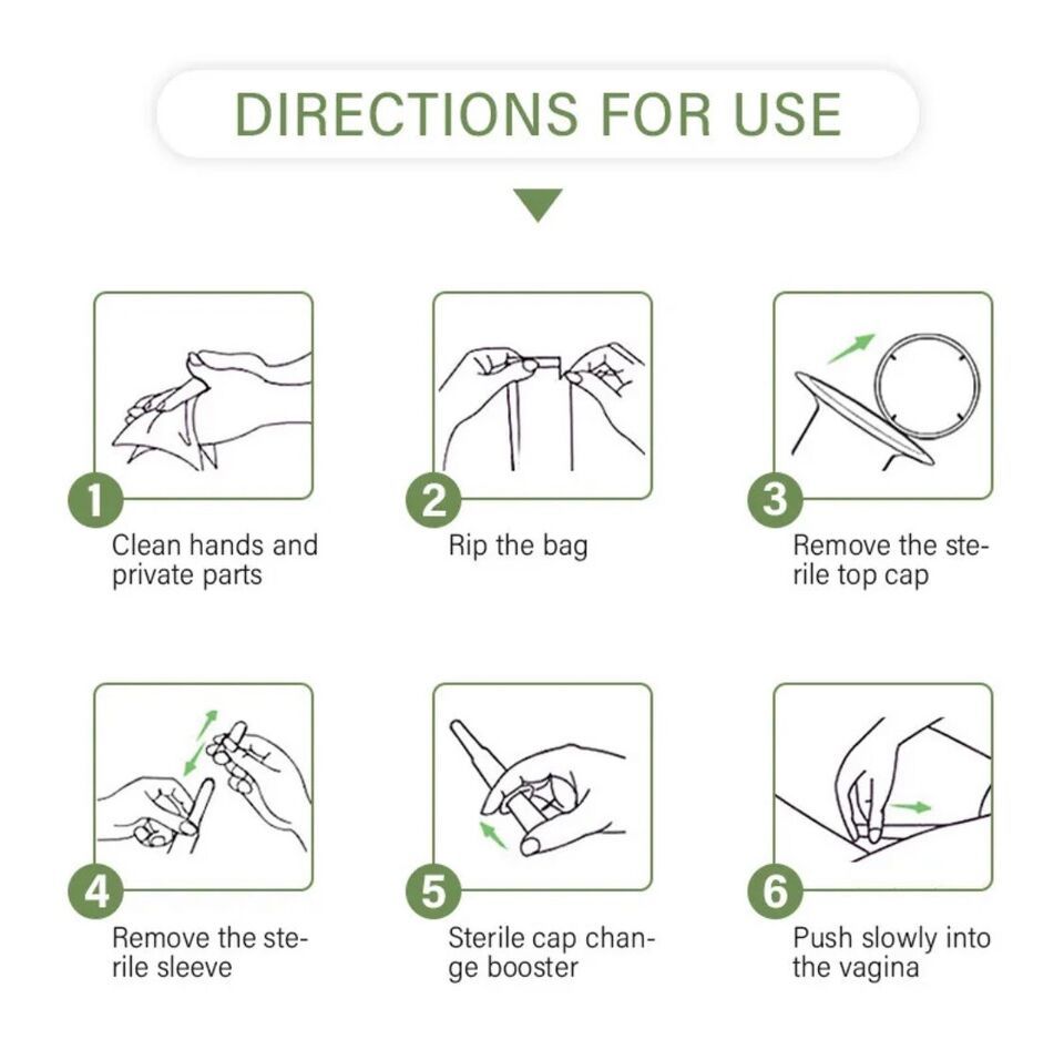 2)Remove the protective cap of applicator and gently insert the pre-filled applicator into the vagina at least 7cm deep.