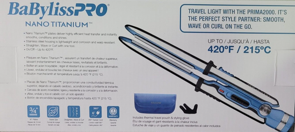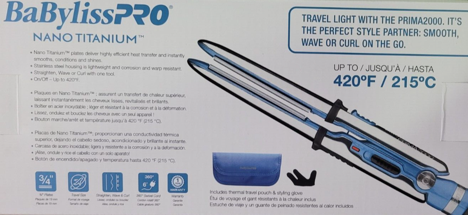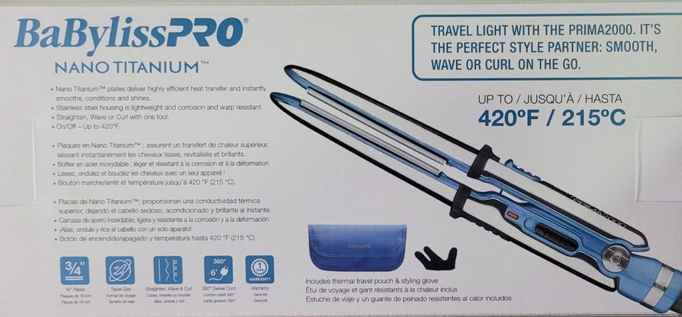 This NEW Travel Mini Iron allows you to straighten, wave, or curl with one tool. Titanium plates provide exceptional heat transfer to instantly smooth strands and create shine. Travel smarter and lighter with the perfect travel-size version of the Prima3000/Prima3100.