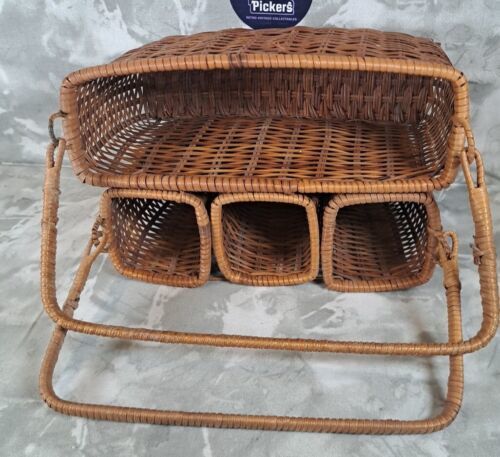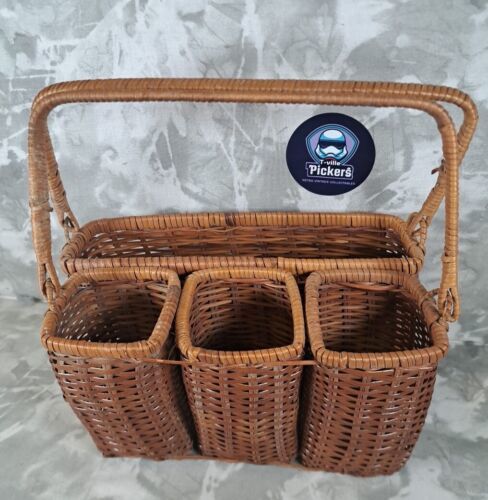Vtg Wicker Silverware Caddy Flatware Napkin and similar items