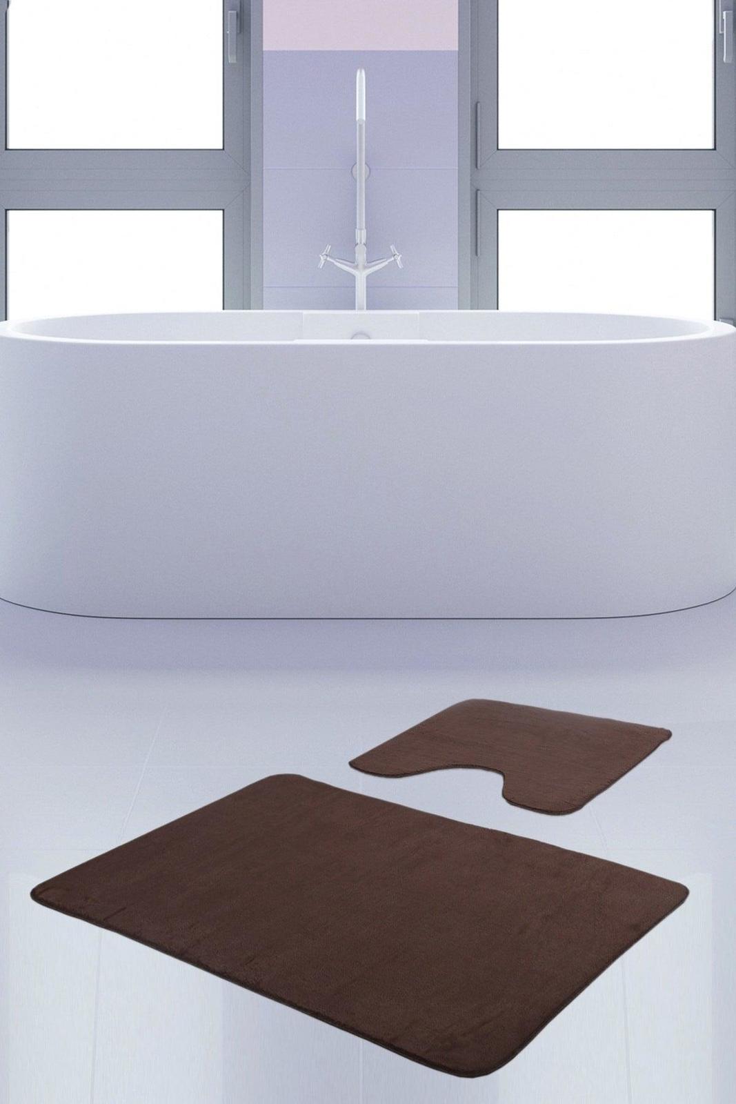 Unicolor Plain Brown 2 Piece Bath Mat Rug Set Non-Slip Toilet Seat Base Set