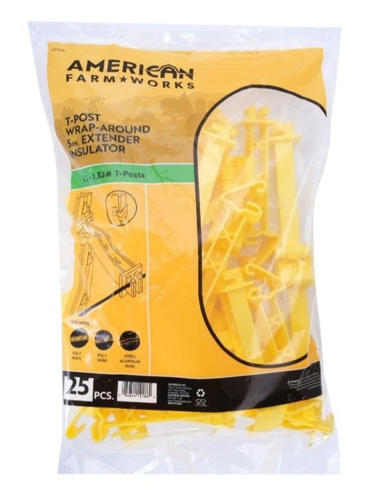 This sale transaction is for a American FarmWorks IT5XY-AFW 5" Snap-On Extender T-Post Insulators Yellow 25-Pack, included exactly what is pictured.