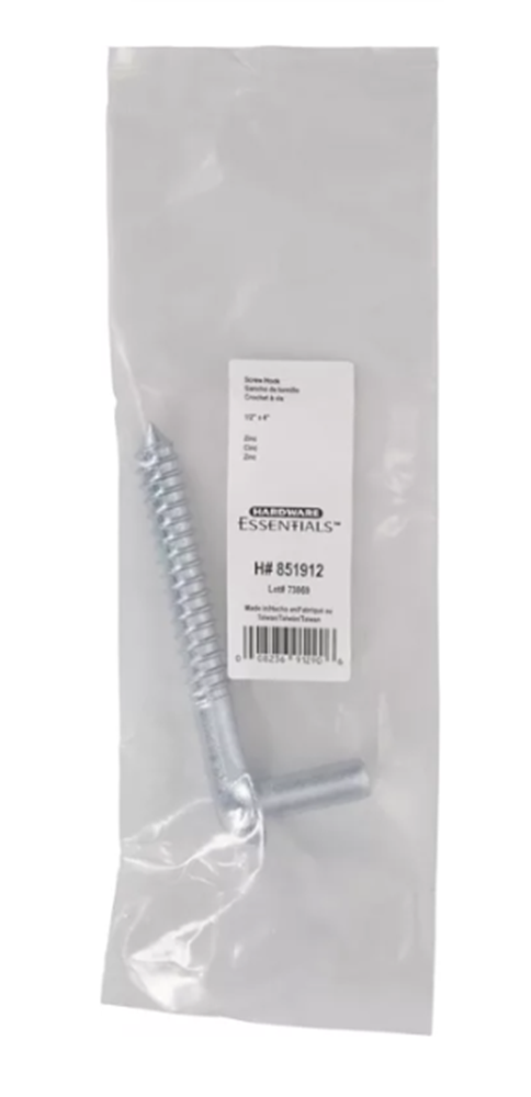 This sale transaction is for Hardware Essentials 851912 Zinc-Plated Gate Screw Hook, 1/2 in. x 4 in.. Included exactly what is pictured.