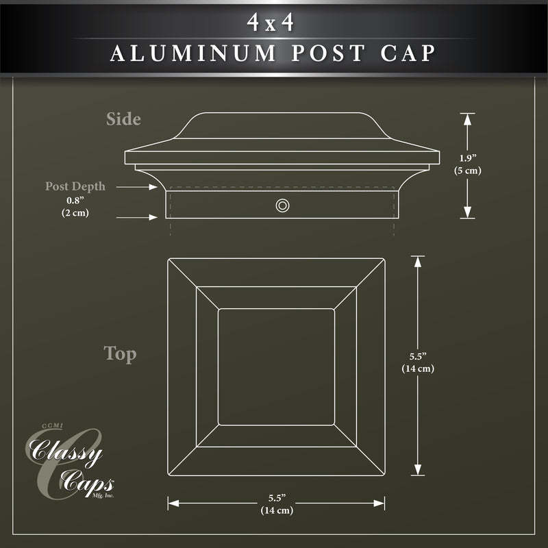 Crafted from heavy-duty cast aluminum, this versatile post cap is designed to fit three standard post sizes: 4"x4", 3.5"x3.5", and 3.25"x3.25". Its robust construction ensures long-lasting performance, while the sleek, modern design adds a touch of sophistication. Perfect for enhancing the appearance of your fence, deck, or posts, the Classy Caps 6x6 Aluminum Post Cap not only protects your posts from weathering and decay but also elevates your exterior decor. Easy to install and maintenance-free, this post cap is the ideal finishing touch for any project.