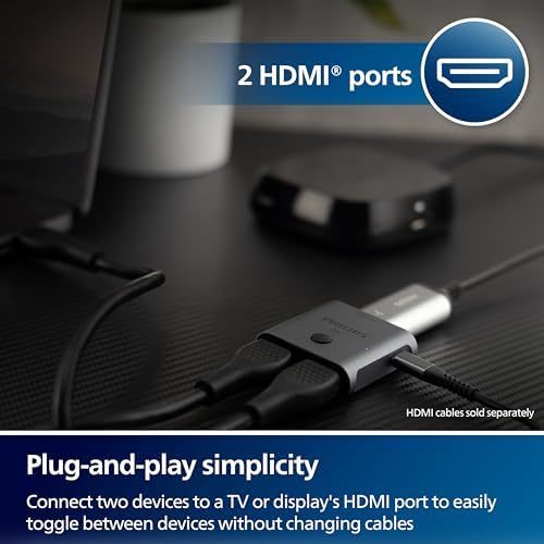 Elevate your entertainment experience with this cutting-edge HDMI switch, designed for seamless connectivity and unparalleled performance. This versatile device boasts universal compatibility, effortlessly working with all brands of HDMI cables and HDMI-enabled devices, including TVs, gaming consoles, Blu-ray/DVD players, and streaming media players. With two HDMI ports, this compact HDMI 2.1 switch allows you to connect two devices to a single TV HDMI port, making it incredibly easy to toggle between your favorite source devices without the hassle of constantly changing cables. Whether you're gaming, streaming, or watching movies, enjoy the convenience of plug-and-play simplicity.Experience stunning visuals with support for 8K Ultra HD at 60 Hz and 4K at 120 Hz, thanks to its impressive data transfer rate of up to 48 Gbps. This switch is equipped with HDCP 2.2 compatibility, ensuring you can enjoy the latest content without interruptions. Plus, with support for Dolby Atmos and HD Dolby 7.1 audio, immerse yourself in a next-level audio experience that brings your entertainment to life.Crafted with premium aluminum housing, this HDMI switch not only looks sleek but is built to last. LED indicator lights clearly show which source device is currently selected, adding to the user-friendly design. A 6-foot USB cable is included, allowing you to power the switch from a USB-equipped wall outlet or your TV's USB port, providing flexibility in setup.Rest easy knowing that your purchase is backed by a limited-lifetime replacement pledge and free U.S.-based technical support available Monday through Friday, from 7 AM to 8 PM Central Time. Whether you have questions or need assistance, help is just a call away. Upgrade your home entertainment system today and enjoy the ultimate in connectivity and performance!