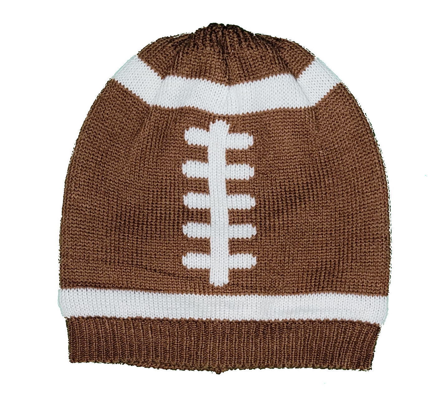 The Little Sweetees Football Knit Cap measures 6 1/2 in wide and 6 3/4 in from top to bottom, made of a stretchy knit acrylic for ultimate comfort and fit. Recommended ages 3 months to 18 months.