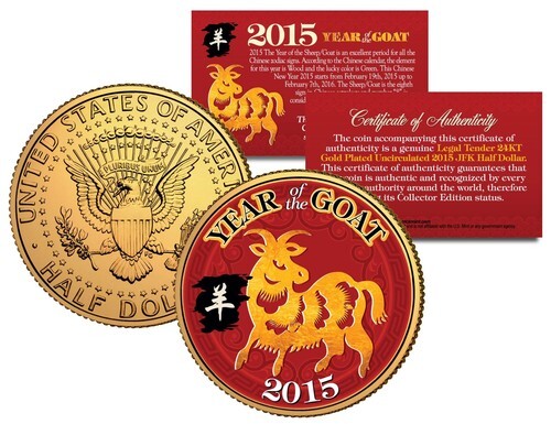 Chinese LUCKY NUMBER 8 Coin 24K Gold Plated 2015 JFK Half Dollar Coin U.S. Money