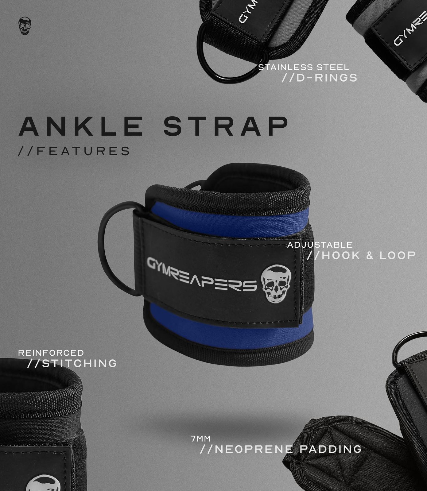 Gymreapers Ankle Strap (Single) For Cable Machine Kickbacks, Glute Workouts, Lo
