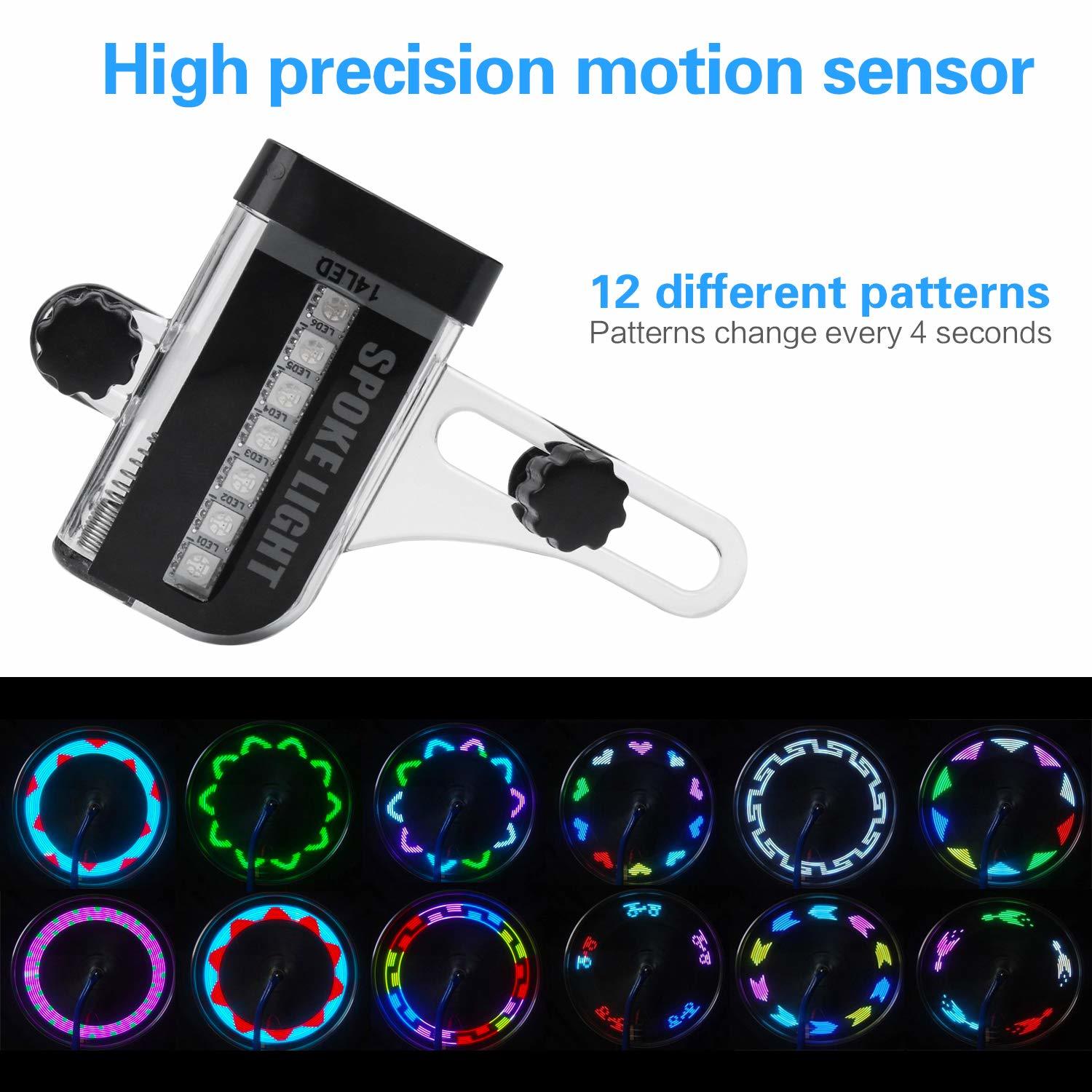 ??GET WHAT MODEL YOU LIKE?: The bike wheel lights controlled by motion sensor, automatic lighting with riding. After the bike spoke lights are installed, it will enter auto mode. light glows when bike moves, turns off after stop moving for about 30 seconds.