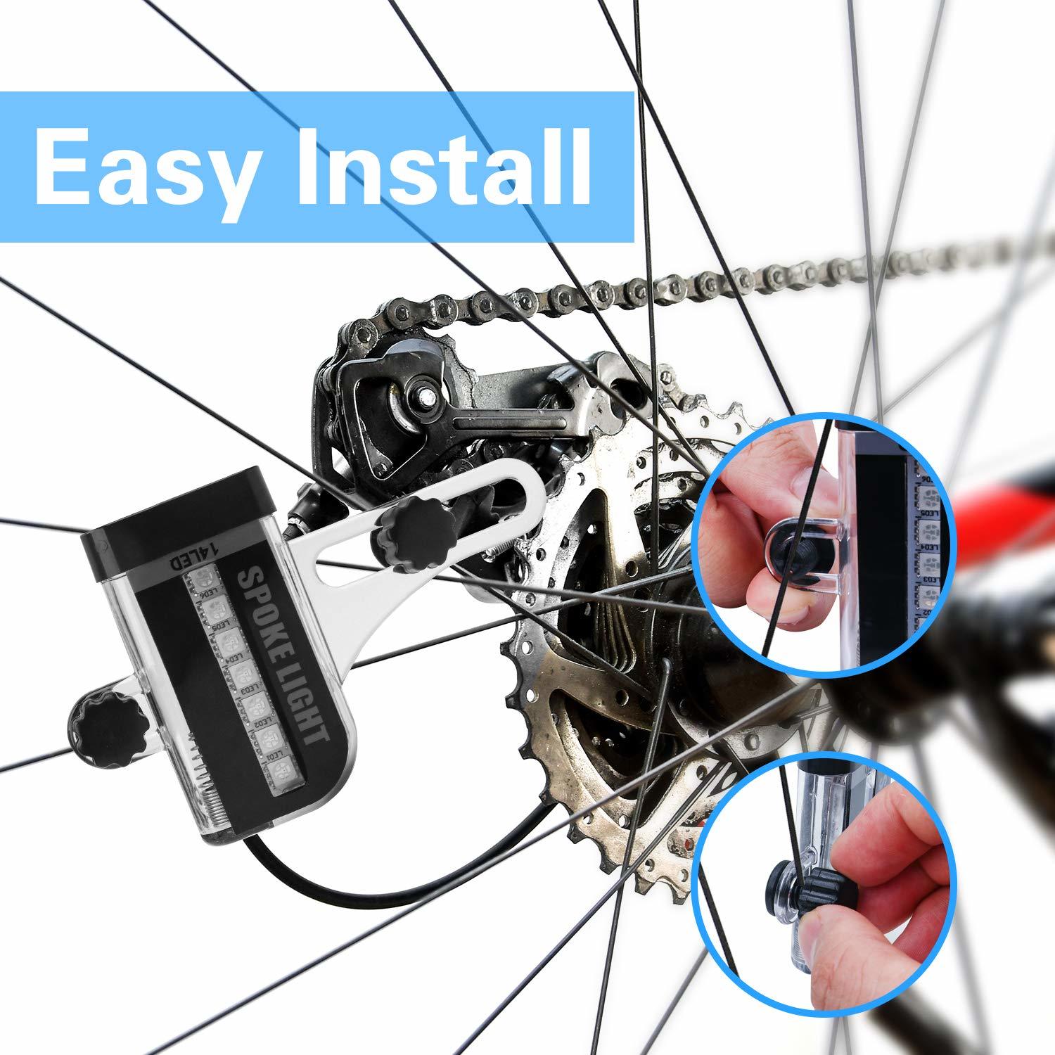 ??Easy to Use?: No tools are required, our wheel light is very easy to use, you can install it in 3 minutes or less, just install the battery and screw the light to the spoke of the bike, then you will enjoy an attractive light for your bike.