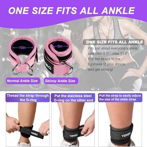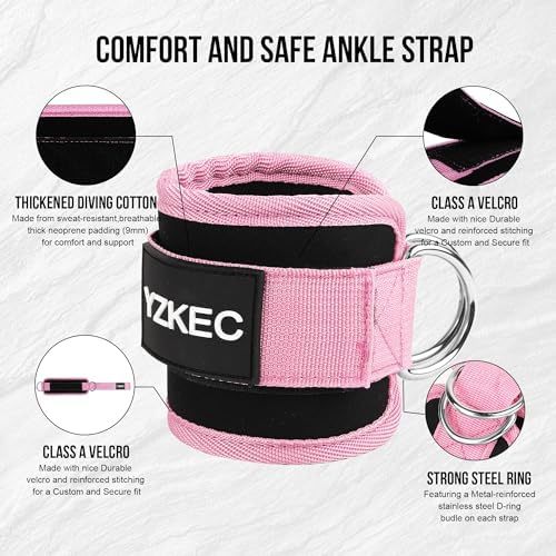 YZKEC Ankle Strap for Cable Machine Attachments and Resistance Bands with D-Rin