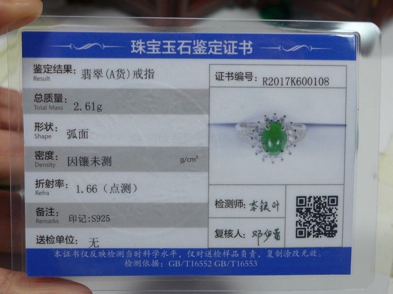 Certified Fine Natural Grade A Emerald Jadeite Jade Hand Carved Oval Cabochon S925 Ring
