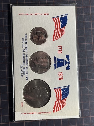 1976 BICENTENNIAL COIN COLLECTION Colorized US 3-Coin Set 24K Plated QTR IKE JFK