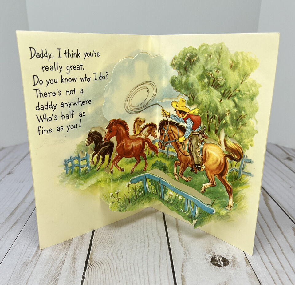 Vintage Cute Western To Dad on Father's Day Hallmark Pop-up Greeting Card Unused.