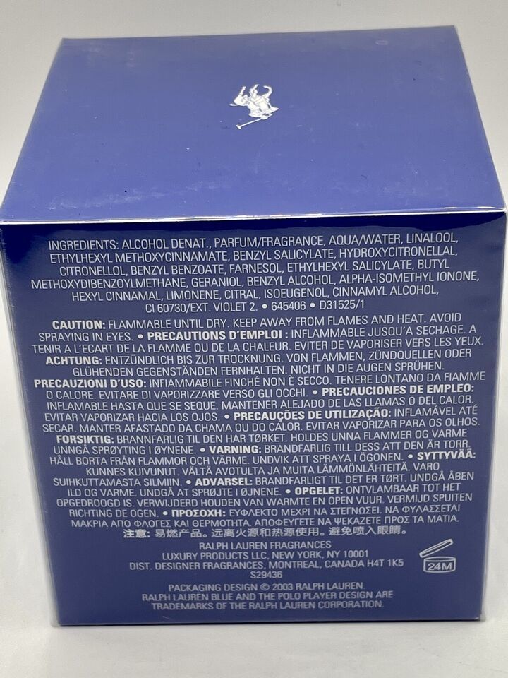 Ralph Lauren BLUE Perfume 4.2oz/125ml Eau De Toilette Spray Women, NEW /SEALED Box