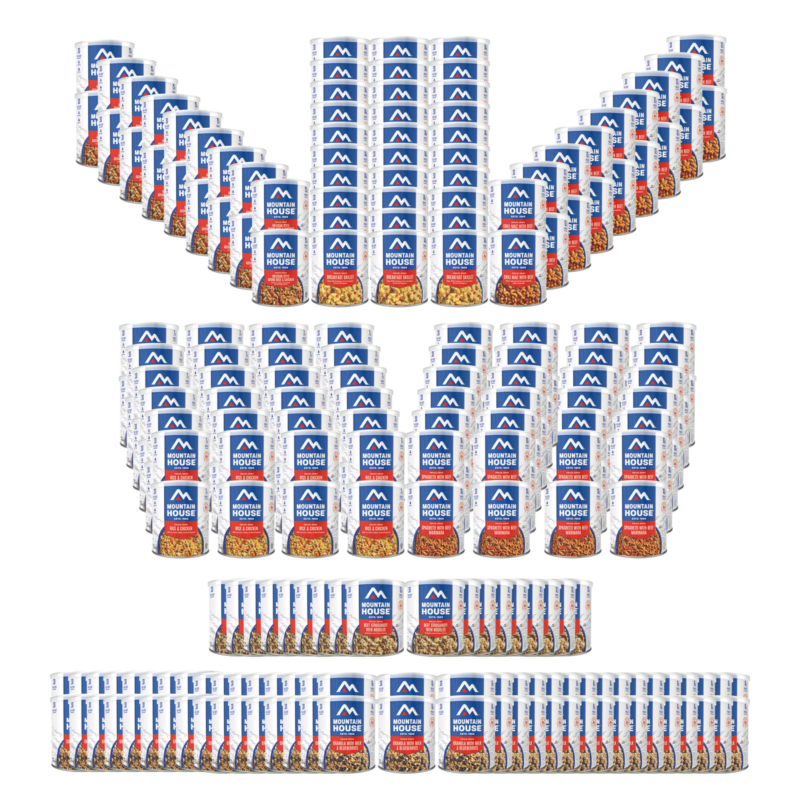 With a 1-Year Food Supply from Mountain House, you will be prepared with meals for any emergency that requires you to be self-sufficient for up to a year. This supply includes 724,680 calories, enough for 1,985 calories per day.