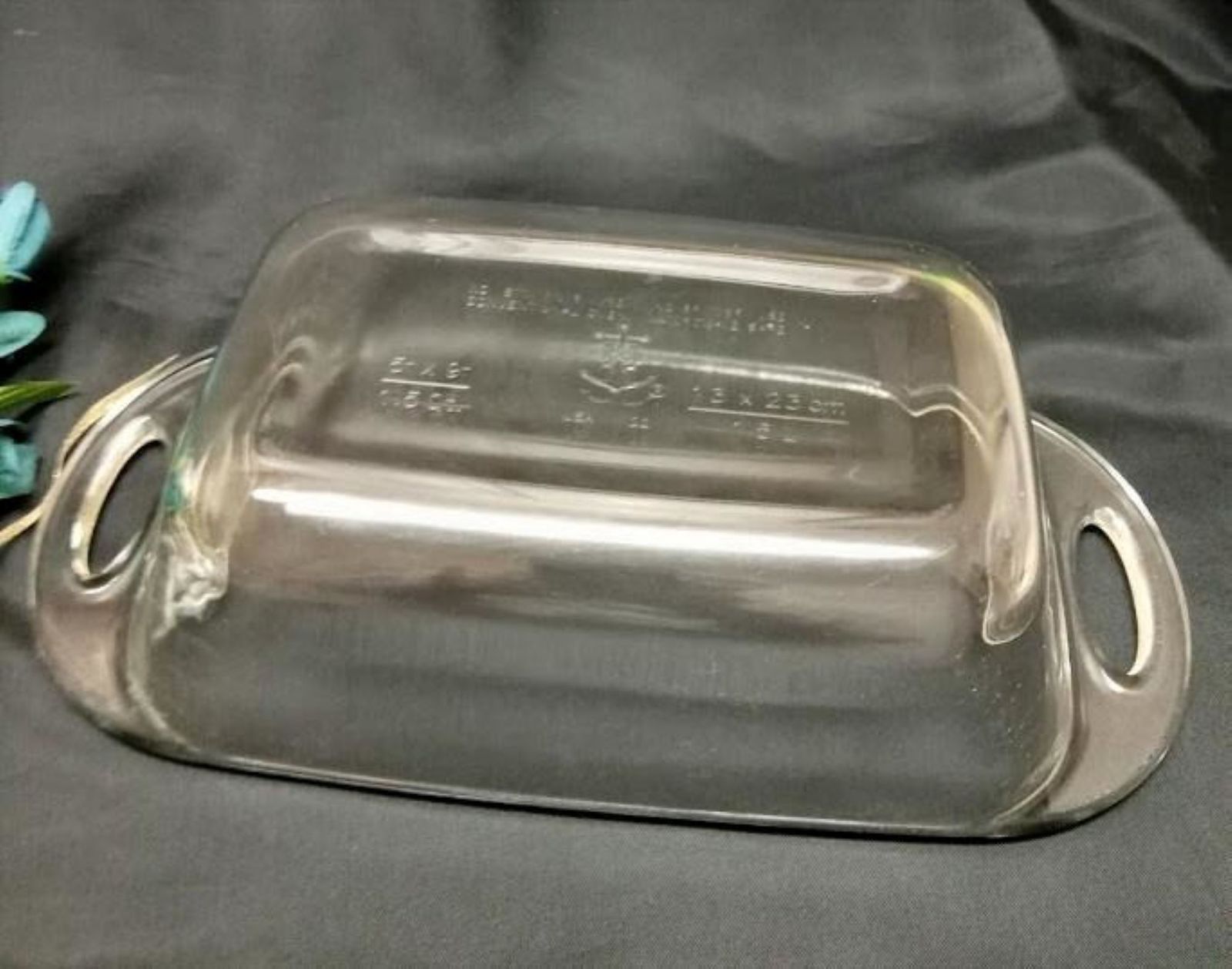 Up for your consideration is a very nice antique Anchor Hocking Glass loaf pan. It was made in the 1960s made of very heavy durable glass that will last for generations to come. It measures 12" long(from handle to handle) x 6" wide. This piece will make a wonderful addition to your bakeware collection or give as a cherished gift. Perfect for the upcoming Holiday Season.
