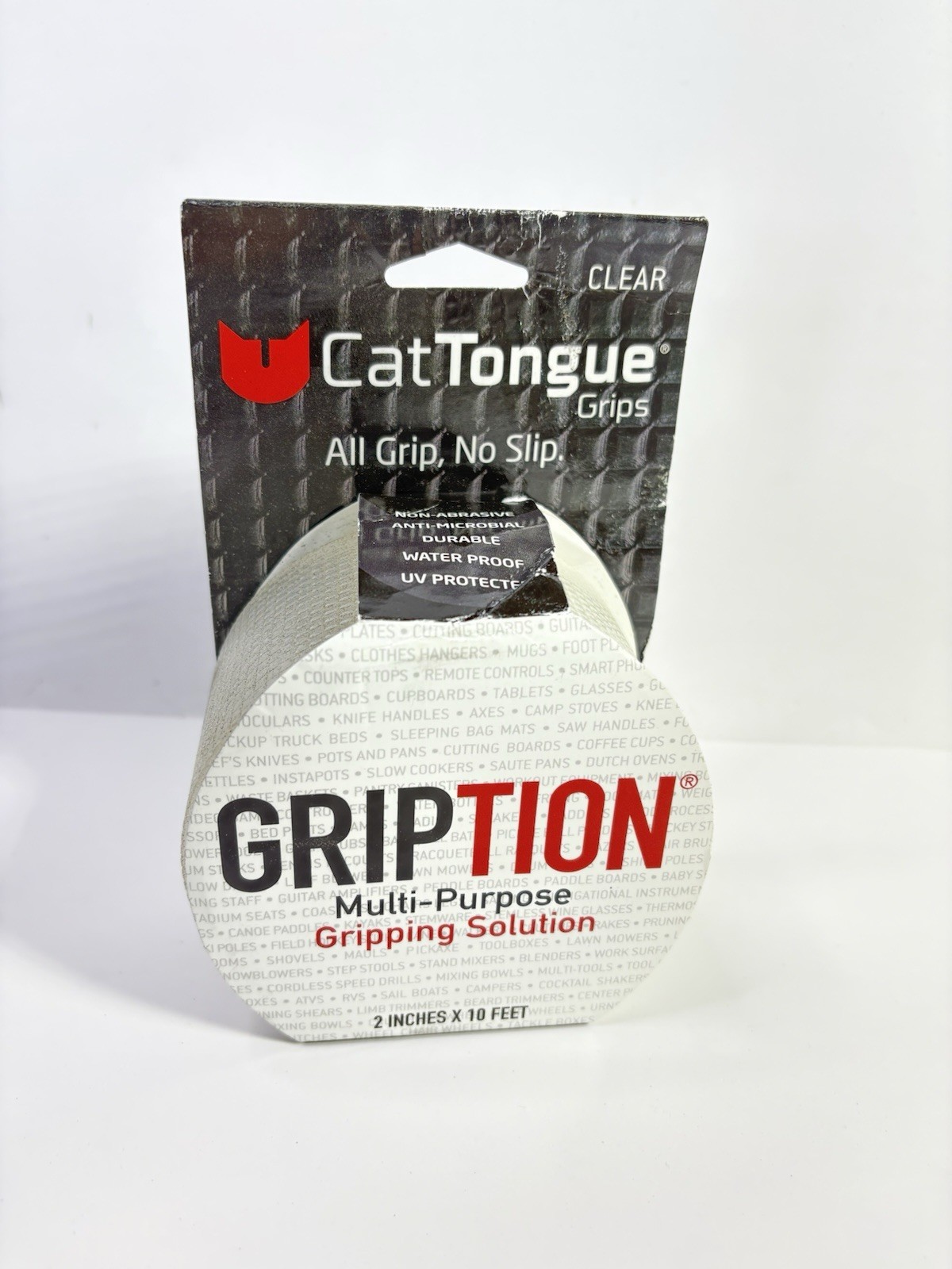 Brand new pack of Gription Cat Tongue Grips, 2 inch X 10 feet, clear grip tape.