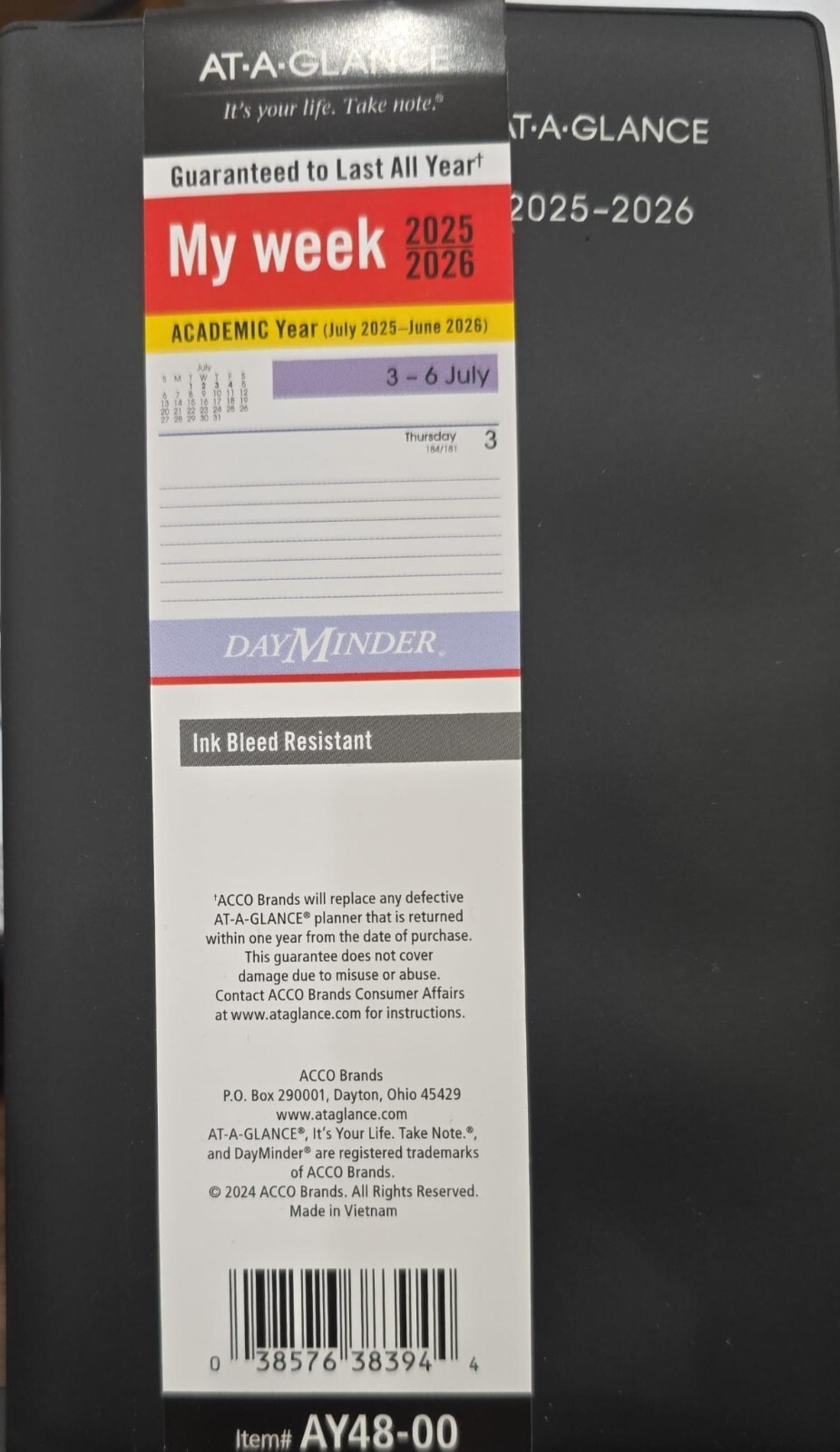 AT-A-GLANCE DayMinder Academic 2025-2026 Weekly Planner Black 3 1/2" x 6" AY4800