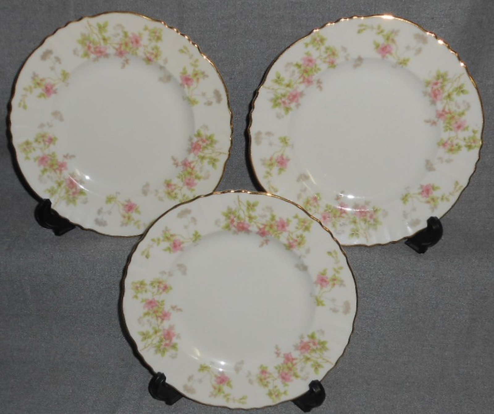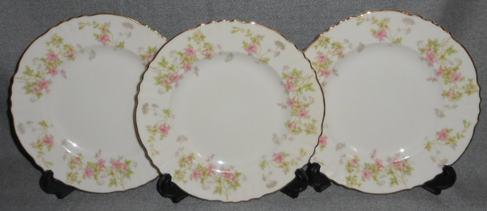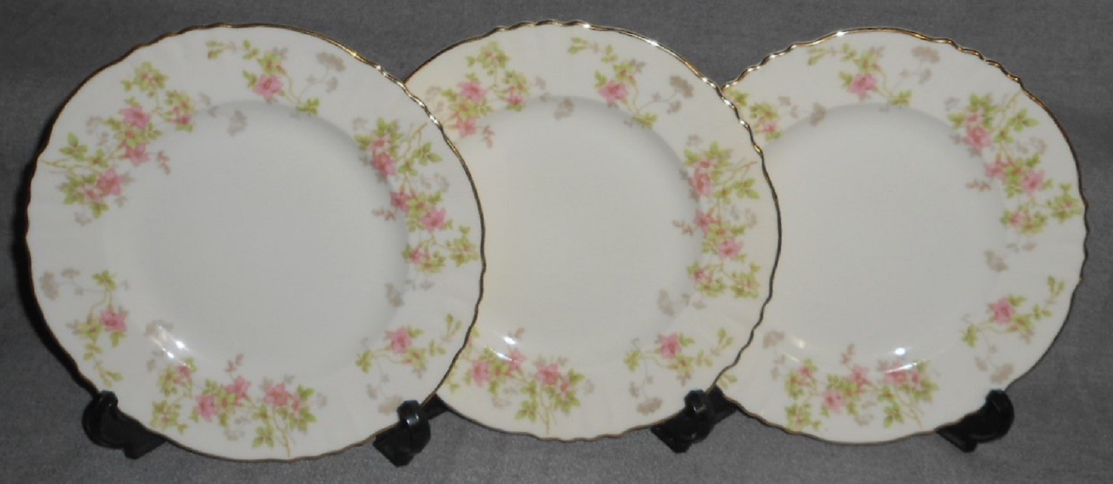 Set (3) Syracuse STANSBURY PATTERN - GOLD TRIM Dessert Plates USA Federal Shape
